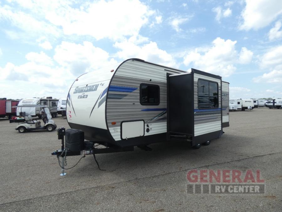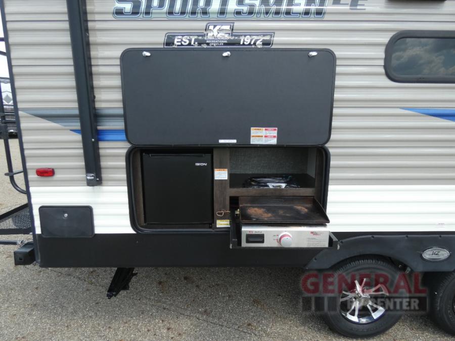 With any KZ Sportsmen LE travel trailer or toy hauler, you will be able to extend your camping season thanks to the optional Climate Package, which includes an insulated and enclosed underbelly. The new aerodynamic front profile with a smooth metal front will not only be eye-catching, but will help save on fuel mileage as you travel to your destination and you'll appreciate the flip-up solid entry steps that provides sturdy access into your unit. Each model features a power awning with LED lights, exterior speakers with LED lights, and a lighted power tongue jack with a hitch light for easy set-up every time. Inside, you'll enjoy many comforts and conveniences, like the king bed mattress, the dinette doors 36" pullout storage bins in the travel trailers, two 6.5" interior speakers, and the multi-media sound bar stereo with Bluetooth, HDMI and USB charge. Choose your favorite layout today and start camping tomorrow!