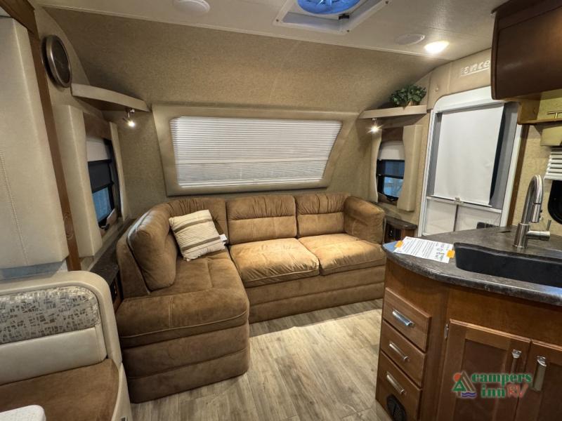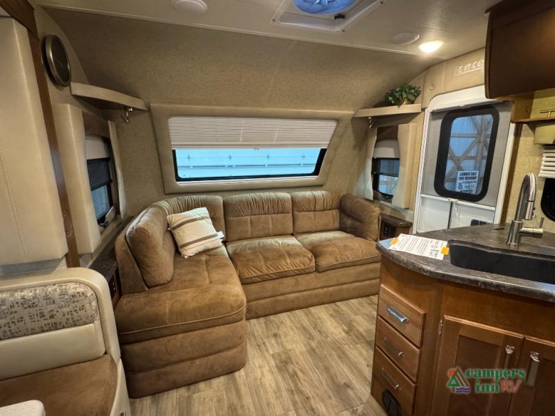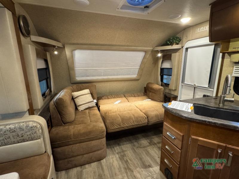 With every Lance travel trailer you will appreciate the Azdel interior panel walls and block foam insulation, which allows you to confidently camp even when the weather isn't ideal, and because the fresh water tank that has been enclosed, insulated, and heated, you never have to worry about your water supply freezing over. These units feature LED interior lighting, a bath skylight, allowing for extra standing room and natural light, plus an exterior wash station to easily clean off your camping gear, and many more features. The only thing you need to focus on is the fun that awaits you each time you take your Lance travel trailer out!