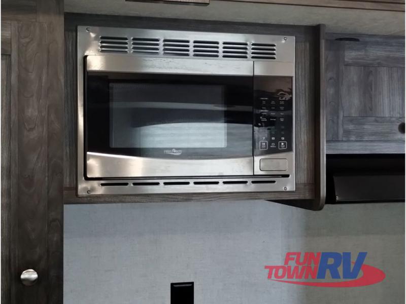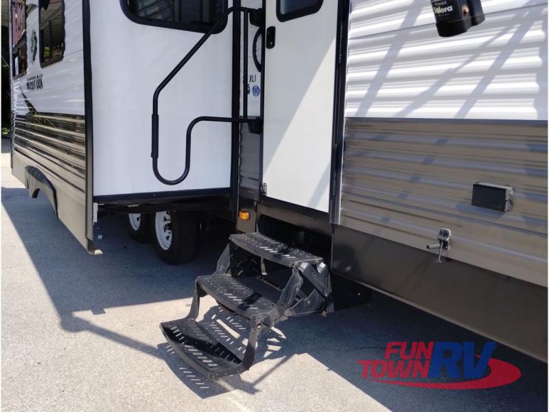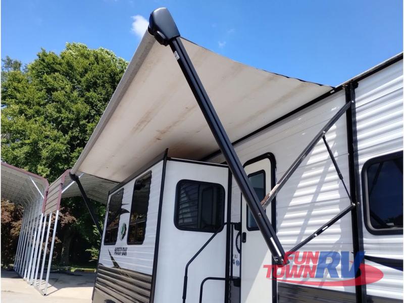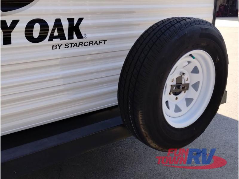 Every one of these Starcraft Mossy Oak travel trailers are carefully assembled so you get the most out of your outdoor experience. With a fully walkable Magnum roof system, flexible LP lines for less corrosion, and a fiberglass insulation, you can take this trailer anywhere you need to go. The power awning features LED lighting and integrated speakers so you can jam out while you watch the rain trickle down. By having no carpet throughout the entire trailer it creates a kid and pet friendly trailer too. The tinted safety-glass windows and pleated night shades provide you with the same at home privacy. The forced air heated and enclosed underbelly is just one of the many reasons why you should choose a Starcraft Mossy Oak travel trailer today!