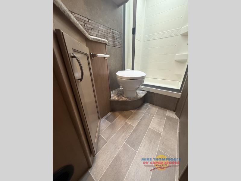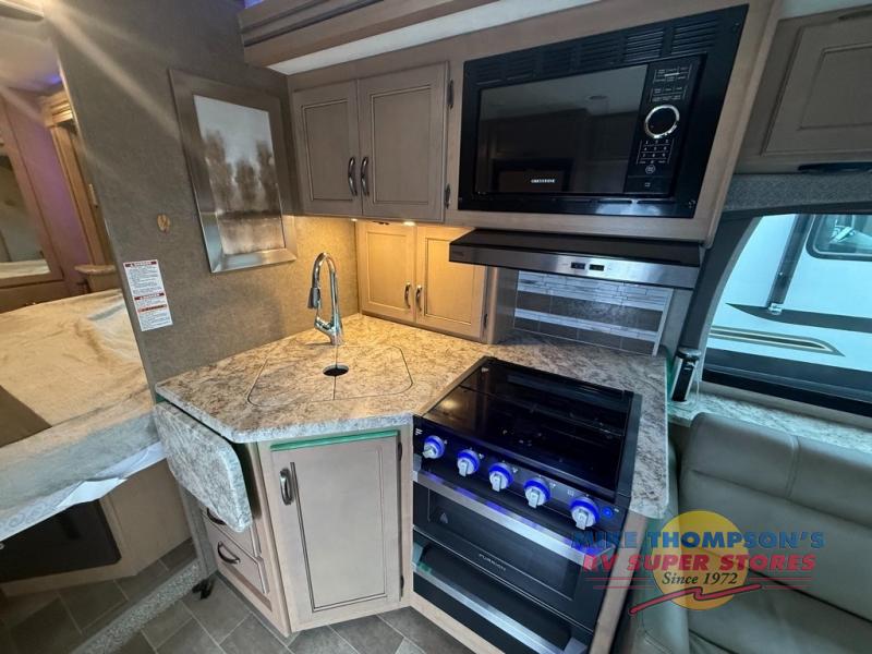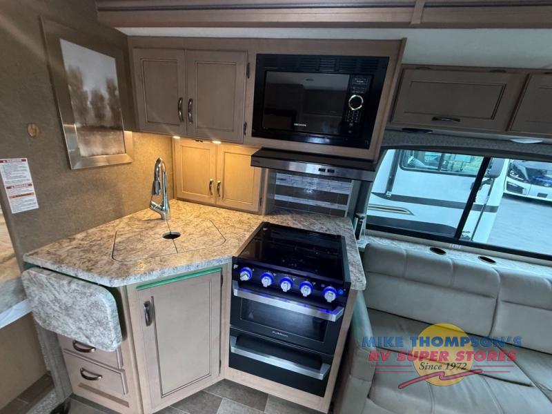 All of your getaways will be something to talk about when you take them in this Chateau Class C gas motorhome! You'll feel like royalty as you spend your nights sleeping on the RV king bed in the back, and the privacy curtain will allow you to close off the space so that you can sleep in solitude. Another functional space is the kitchen because it has a flip-up countertop that will fold away when not in use, and the double-door refrigerator will be so helpful for keeping all of your perishables fresh throughout your trip.