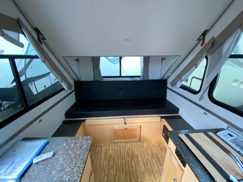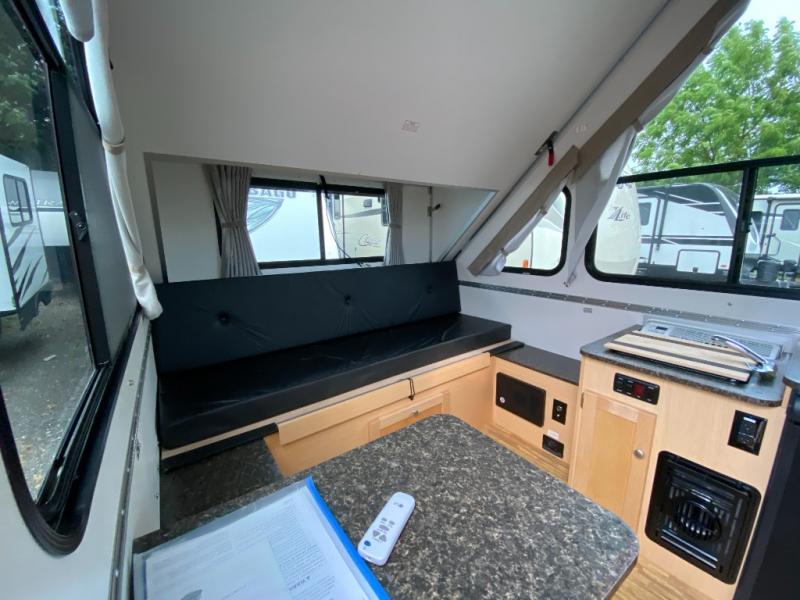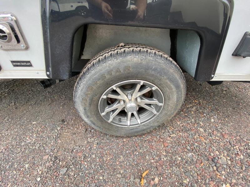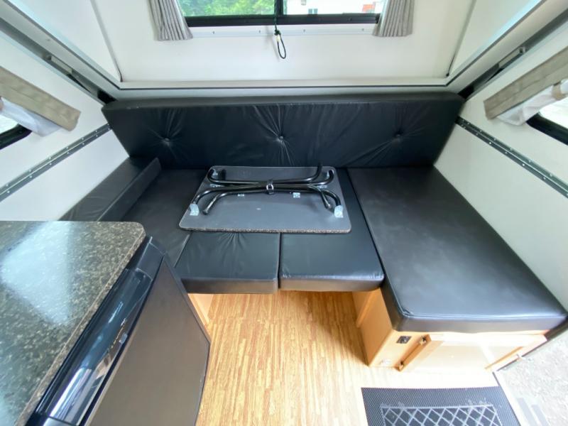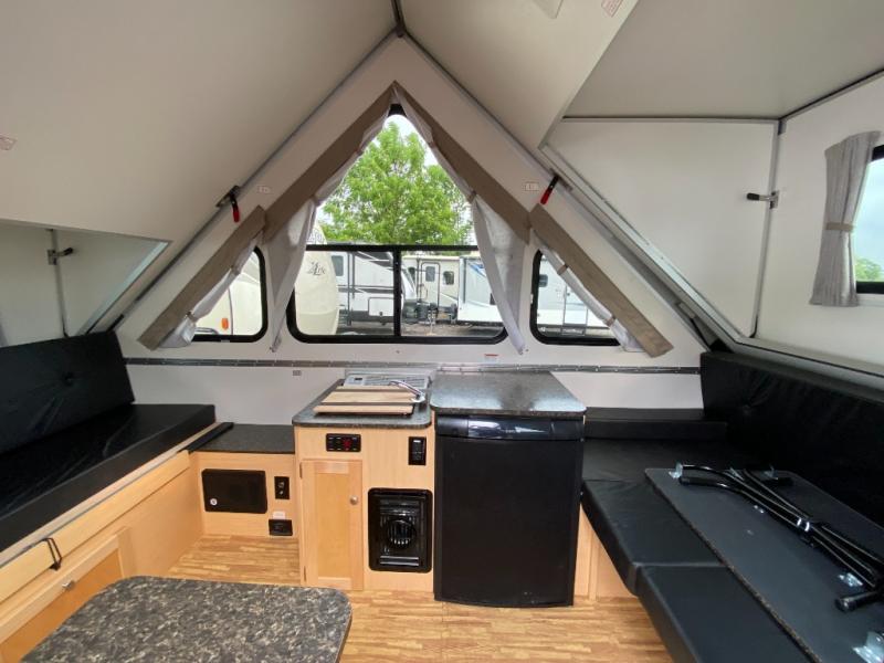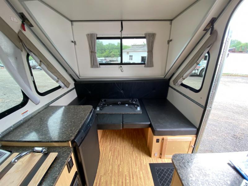 Find your perfect getaway with this Classic A-frame camper! A two-burner in/out stove allows you to make a hot meal instead of resorting to granola bars and dry cereal every night for dinner, and since there is also a sink and refrigerator included, you can wash up after dinner and keep leftovers chilled for lunch tomorrow. The 46" x 76" dinette can convert into a bed so that an additional traveler has a place to sleep at night, and this dinette also has under-seat storage so that you can keep your gear hidden away. You will also really love the two skylights with night shades because you can admire the moon before drifting off to sleep.