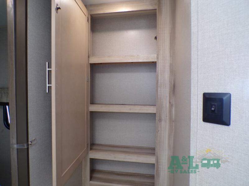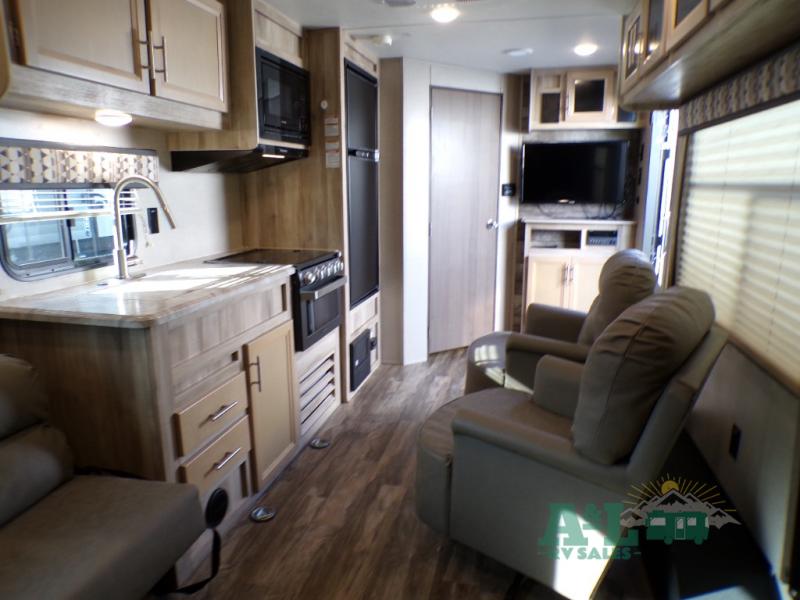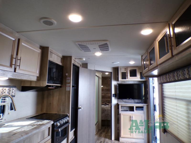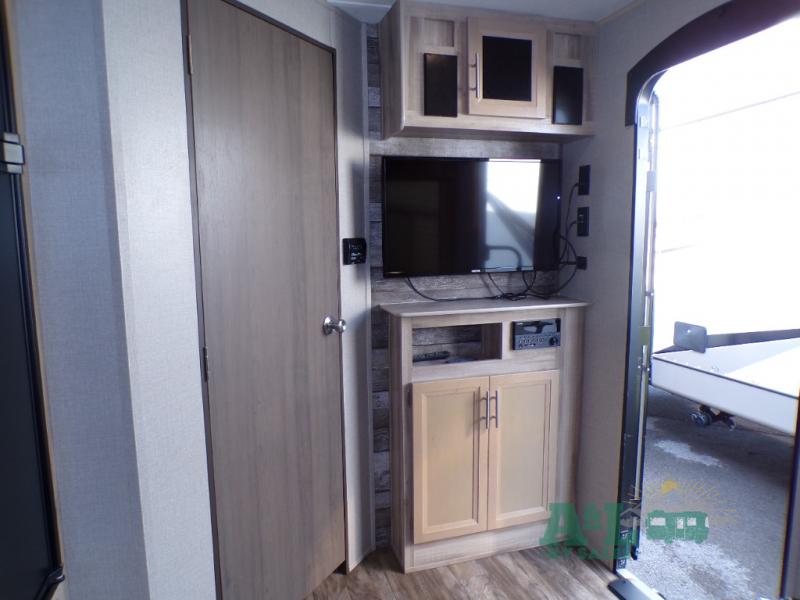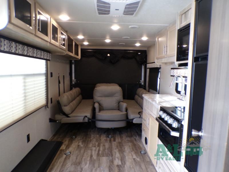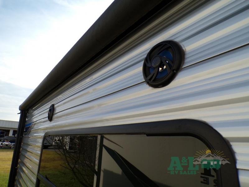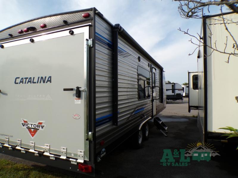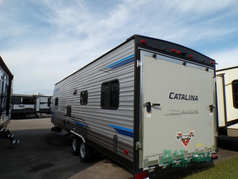 The Coachmen Catalina Trailer Blazer toy hauler puts the fun in functional! Not only do you have the convenience of an excellent toy hauler, but you also have an abundance of amenities within the trailer itself. With a long list of interior features, there isn't much that has been left out, and the exterior features are also desirable, plus there are new 2021 features added. You will find a power awning with multi-color LED lighting and remote, an upgraded graphics package, an all-in-one entertainment TV with an independent dual zone control, upgraded JBL Elite exterior speakers with LED lighting, magnetic baggage door latches, and an enclosed and fully sealed underbelly. The interior offers you new linoleum flooring, bedrooms USB surface mounts, an upgraded slim design range hood, an all-in-one monitor panel system, and under-bed storage. Plus, if you choose to add the optional party deck to your unit, you can have endless summer gatherings.