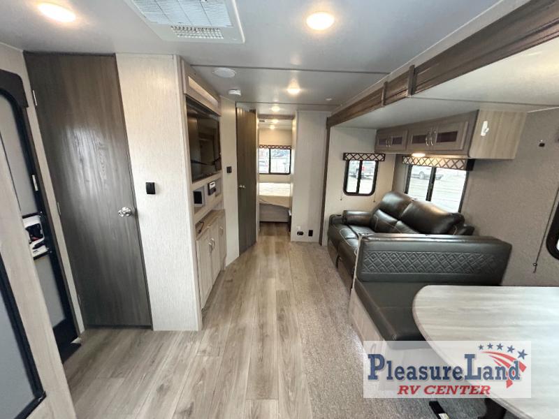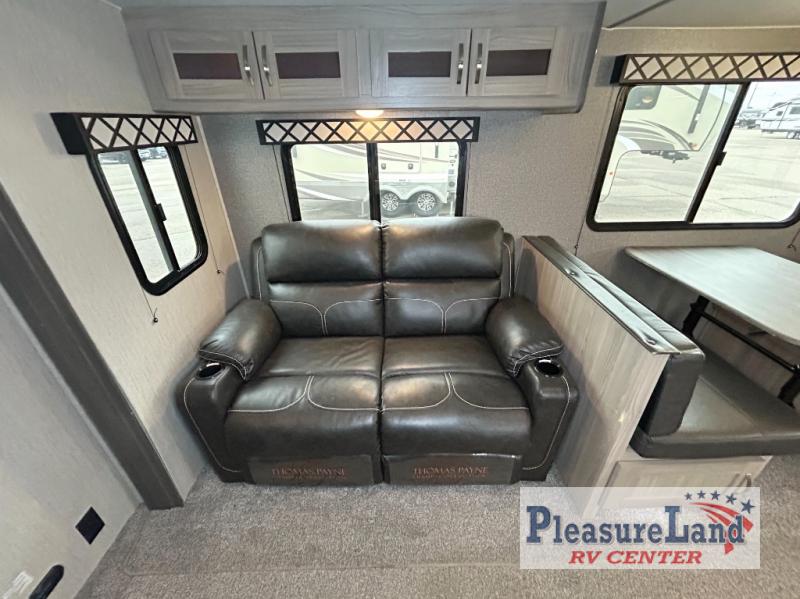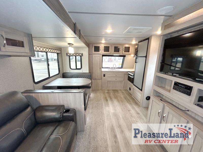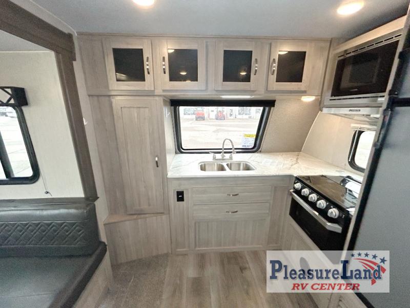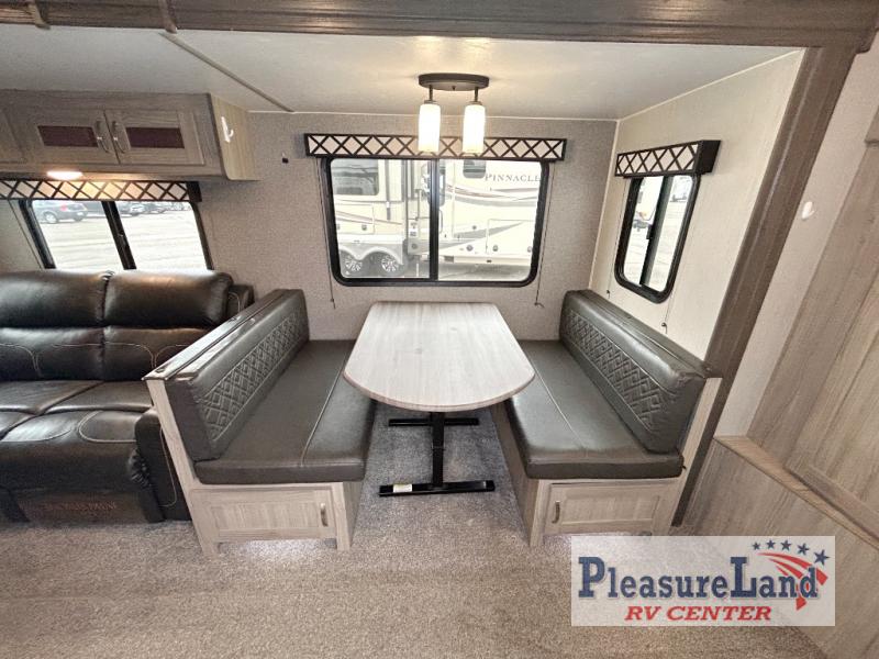 Because this Freedom Express Ultra Lite travel trailer is so light, it won't be difficult to get it down the road to your favorite local park! You will be able to stretch out and relax because of the two slides that have been added, and you can even sit down and have a proper meal at the booth dinette. You'll be able to create those one-of-a-kind dinners that your family loves because of the three-burner cooktop with oven, and you can even take those preparations outside to the fresh air where you will find an outdoor kitchen just waiting to be used.