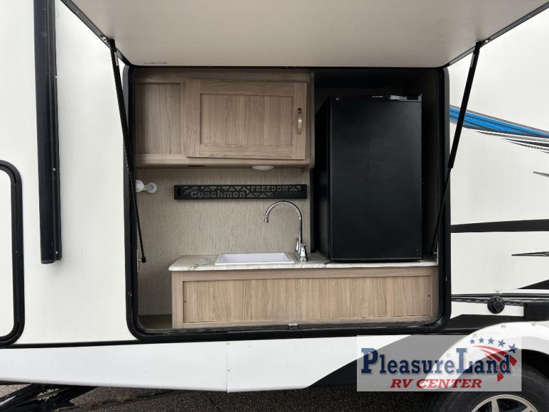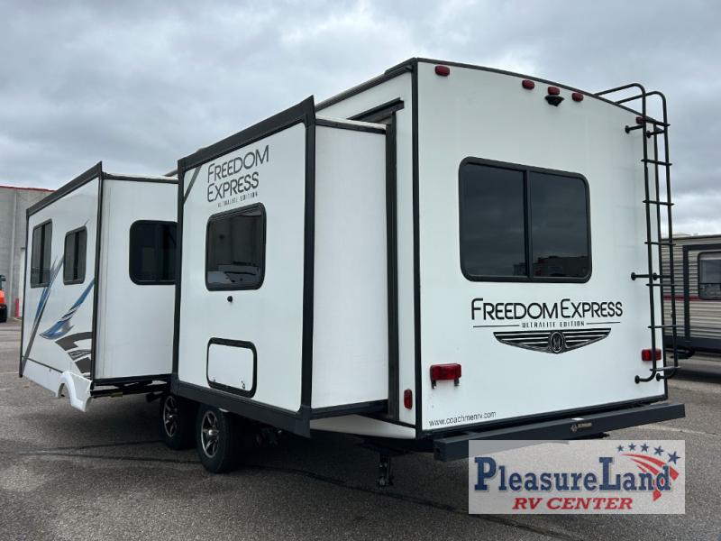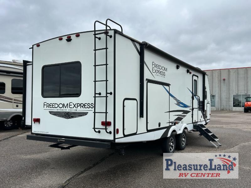 You will thoroughly enjoy the freedom that comes with the Coachmen Freedom Express Ultra Lite travel trailer! Whether it's a quick trip to your favorite backwoods campsite or a longer excursion to uncharted territory, you'll find everything that you need to camp successfully with the Freedom Express Ultra Lite. There is a Tufflex PVC roofing, a front diamond plate, E-Z lube axles, and a pet leash/bottle opener. These trailers have been prepped for a back-up camera, and they are ready for solar power. The TV and radio antenna has also been prepped for Wi-Fi and 4G, and the exterior shower is going to come in handy when you need to rinse off your outdoor toys.