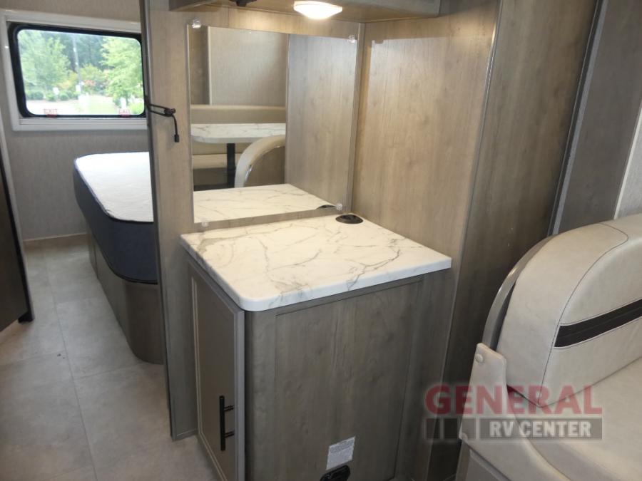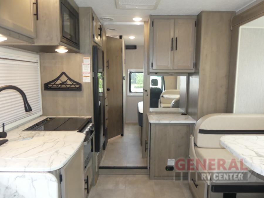 This Prism Select Class C diesel motorhome is the perfect blend between value and luxury! This coach offers you amenities that will enhance both short and long trips, and it has great drivability with the Mercedes-Benz safety features. There are large closets on the interior to make it easy for you to keep your belongings stored away, and the rear bedroom has an RV queen bed slide for some extra space as you walk around the bedroom. There is additional sleeping space with the 44" x 76" dinette and 45" x 80" bunk above the cab, and the kitchen has a countertop extension which will come in handy when you need more prep space.