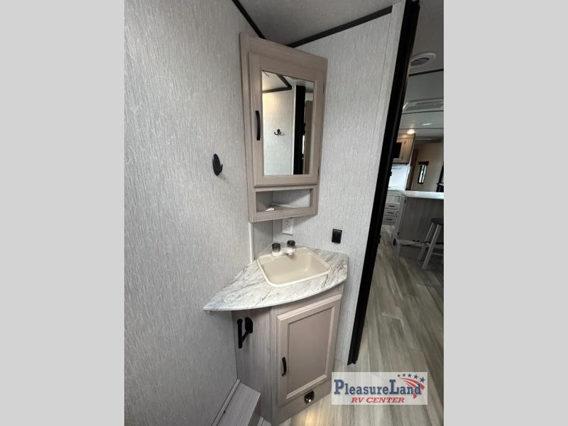 With any Coachmen Spirit Ultra Lite travel trailer, you can simplify your camping without missing any features you would want in your RV! Enjoy years of use during any season with the heated and enclosed underbelly, and feel secure in the lightweight construction of the laminated, aluminum-framed floor and sidewalls, the Azdel composite panels, the Tufflex PVC roof membrane, and the 5" trusses with interior vault. Some other exterior features you will appreciate include the motion-activated light in the pass-through storage, the fishing pole storage, and the dog leash clip. The interior offers lighted USB ports to keep the electronics charged, an AM/FM Bluetooth stereo to listen to tunes, a laundry center to keep everything tidy, and many more storage solutions giving you more relaxation and fun adventures!