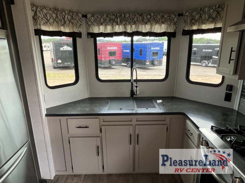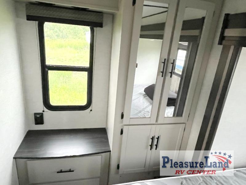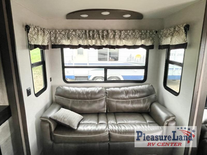 If you want a home away from home then look no further than one of these CrossRoads RV Hampton destination trailers! They are designed to feel like home with 8-foot interior ceilings, rich stainless steel residential style appliances, hardwood raised panel cabinetry, and an abundance of storage. A one piece radius roof with 3/8" decking covers them and an enclosed underbelly protects their vitals. A floor ducted 35,000 BTU furnace will keep you warm on those cooler nights and the floor insulation with radiant tech foil will keep the heat inside. With the standard Convenience package, you will get handy features like two 15,000 BTU A/C's to keep you cool on a hot summer day, a TV antenna for your entertainment, and a quilted bedspread for another at home touch. Come find the right one for you today!