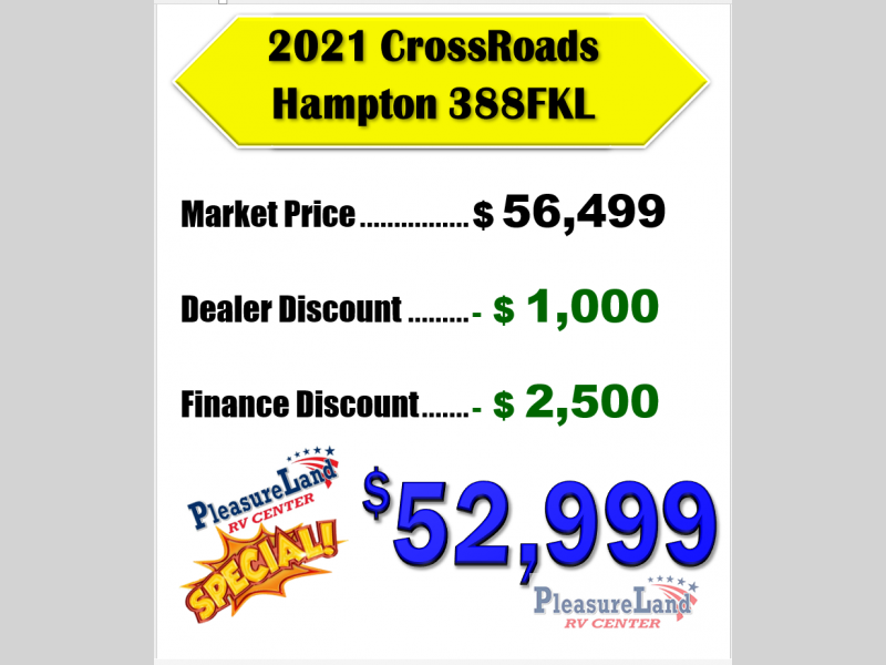CrossRoads RV Hampton HP388FKL destination trailer highlights: