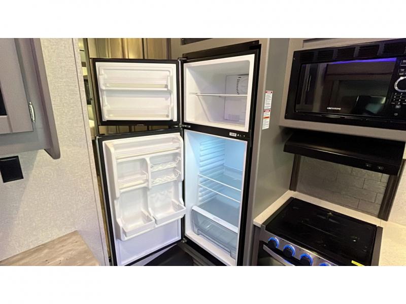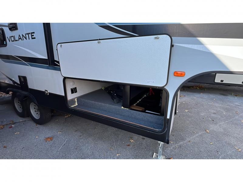 With each Volante travel trailer or fifth wheel by CrossRoads RV you will enjoy years of use and all-seasons camping with the fully enclosed and forced air heated underbelly. You'll appreciate USB ports for your tablet or phone, and each model features WiFi prep if you need to get some work done while away from home. These models include an XL 50/50 stainless sink in the kitchen, along with steel ball bearing drawer guides, and a 10.7 Cu. Ft. 12V refrigerator for all your perishables. The flush floor slide out in the living room with large dinette windows will provide a great view of the great outdoors, and you can jam to some tunes with the AM/FM Bluetooth sound bar. Take a look at the Volante today to find your favorite layout!