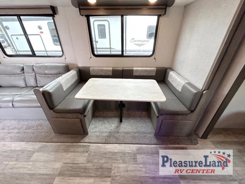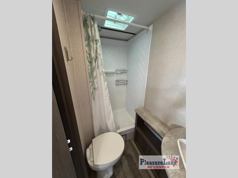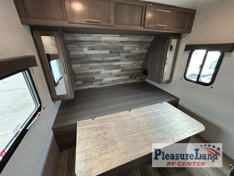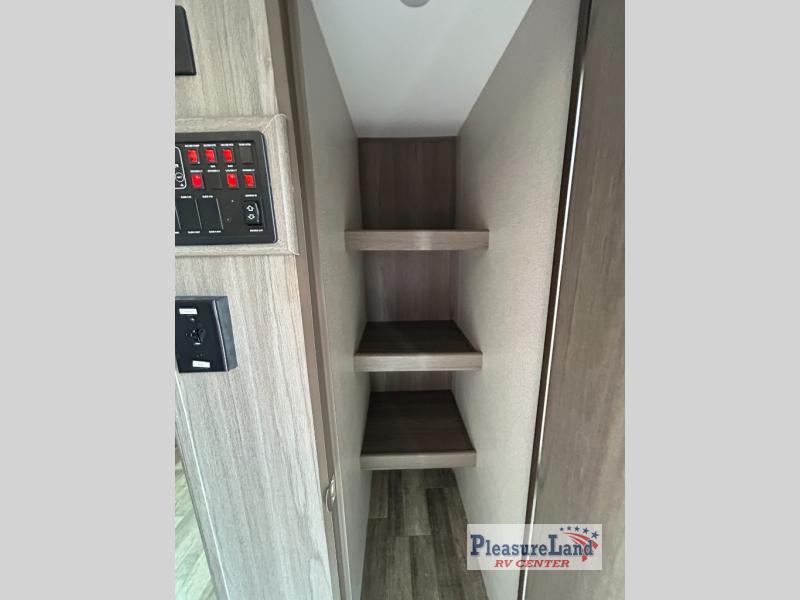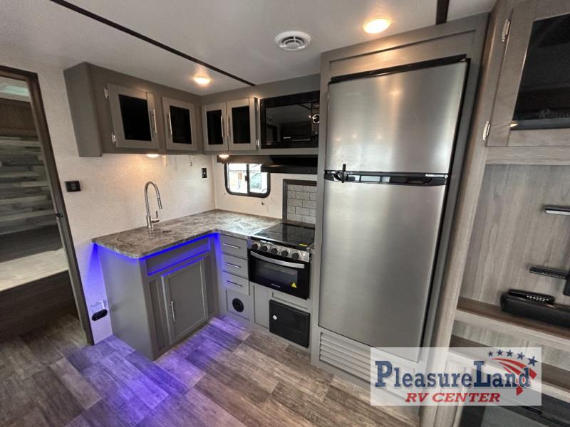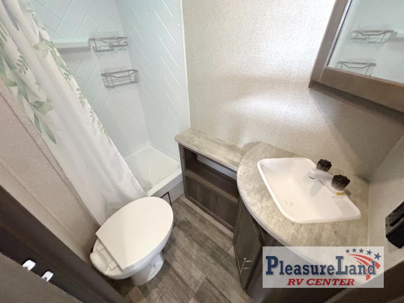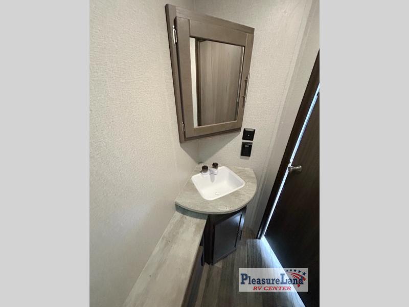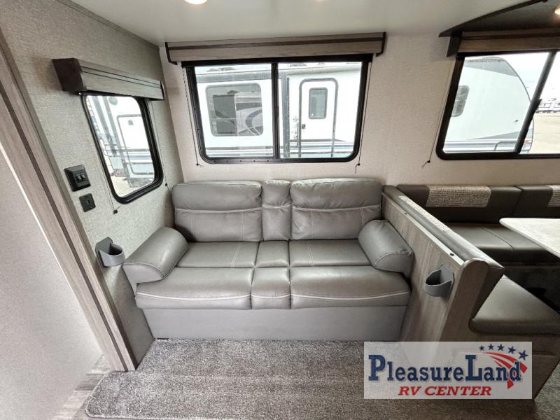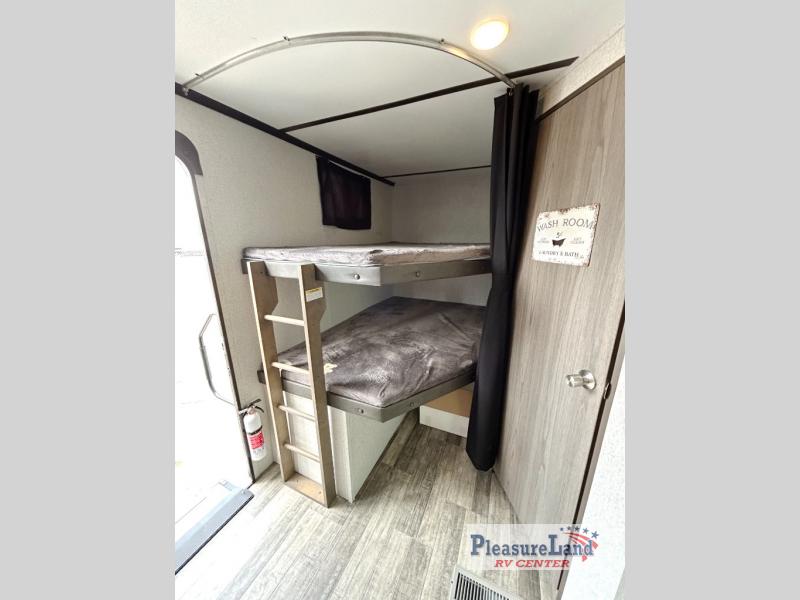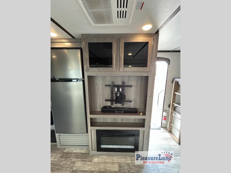 Nothing says fun like camping with your whole family or a larger group. This travel trailer lets you do just that since it can sleep ten people. Your guests will claim the double-size bunks as their own, and you and your spouse will appreciate their own private bedroom up front. You'll find additional sleeping space within the large slide out on the tri-fold sofa and U-shaped dinette. This model includes plenty of storage space, including a large pantry, overhead compartments, plus a medicine cabinet in the bathroom. Whether you're taking a rest on the king bed, relaxing in front of the fireplace, or sitting under the power awning with LED lights, you will fall in love with this travel trailer!
