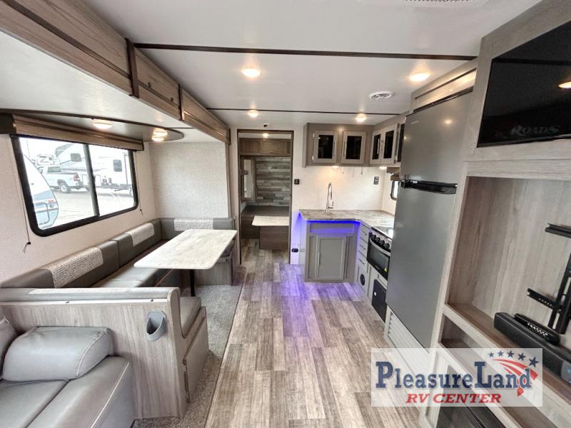 With each Volante travel trailer or fifth wheel by CrossRoads RV you will enjoy years of use and all-seasons camping with the fully enclosed and forced air heated underbelly. You'll appreciate USB ports for your tablet or phone, and each model features WiFi prep if you need to get some work done while away from home. These models include an XL 50/50 stainless sink in the kitchen, along with steel ball bearing drawer guides, and a 10.7 Cu. Ft. 12V refrigerator for all your perishables. The flush floor slide out in the living room with large dinette windows will provide a great view of the great outdoors, and you can jam to some tunes with the AM/FM Bluetooth sound bar. Take a look at the Volante today to find your favorite layout!