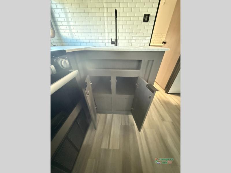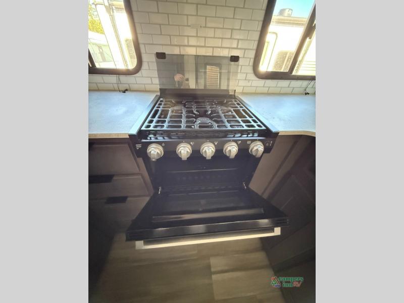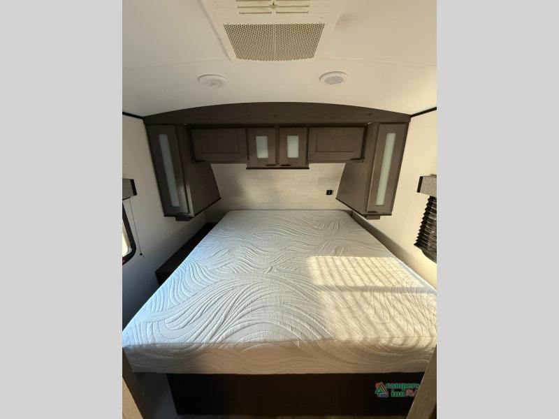 The thing that you are going to like best about this MPG travel trailer is the spacious rear living area! This part of the trailer has a rear entertainment center and a set of opposing sofa slides, and since this section is also adjacent to the kitchen, you can sit in one of the two bar stools at the breakfast bar while still being a part of the living area. Having a walk-through bath is convenient because it means that you can access the bathroom from the main living area or from the comfort of the front private bedroom, and having a king-size bed in the bedroom means that you will be able to sleep in supreme comfort each night.