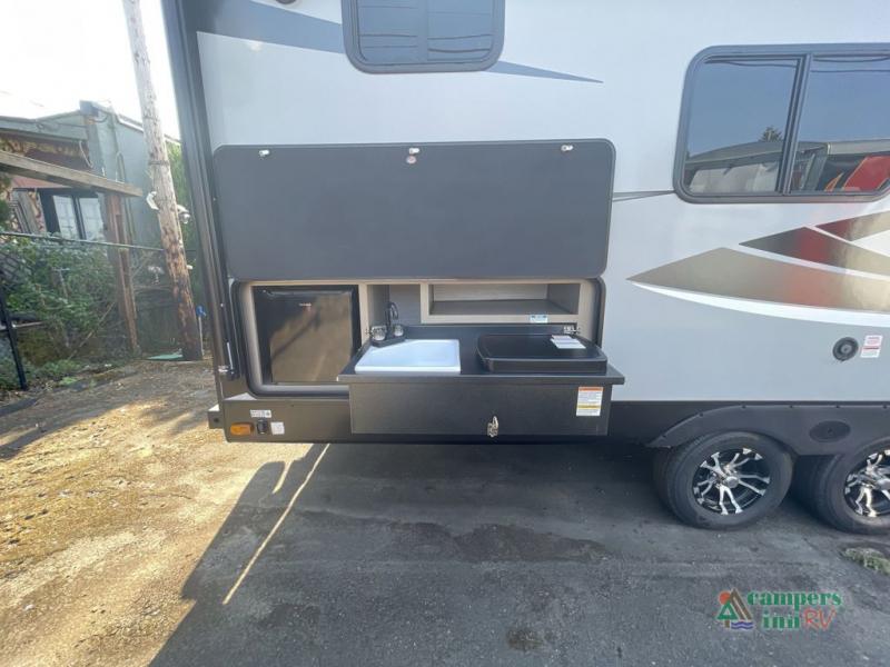 Invite your friends or family to join you as you get away with this Shadow Cruiser travel trailer! The set of double-size bunks, the king-size sliding bed in the private bedroom, the sofa, and the booth dinette all work together to create a space that will allow you to sleep eight to nine people each night, and that is why this is the perfect party trailer. You will also be able to have a fun evening together outside with the outdoor kitchen that will let you grill some burgers as you roast marshmallows over the open campfire.