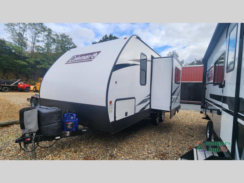 All of these Dutchmen Coleman Light travel trailers are light in weight, but heavy in premium features! They are constructed with an aluminum frame that has block foam insulation, a Darco moisture barrier, a steel powder-coated main frame, and a fully enclosed underbelly to keep the RV's vital functions protected from the elements. You will safely enter the unit each time with the secure solid step that can adjust to your campsite and offers a secure footing. The powered stabilizer jacks and power tongue jack make it easier for you to set up at the campground which means you will have more time to relax. The superior 13,500 BTU air conditioner will keep you cool even on the hottest summer days, and the LED lighting in the pass-through storage makes it convenient for you to access all of your camping gear!