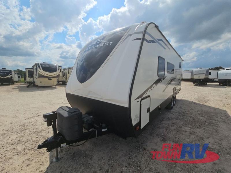 You can go as far as your eye can see with any one of these EAST TO WEST Alta lightweight travel trailers! New 2021 conveniences include a Morryde step with tool box storage, an under bed wardrobe to keep things tucked away, and residential stainless steel appliances with an oversized window package to look out at your beautiful scenery. Don't leave any of your outdoor gear behind, simply store it all in the drop frame pass-through storage with slam baggage doors and 110V power on both sides. The universal docking station not only has a 110V recept, a motion light, and battery disconnect, but also satellite/cable hook ups, a city water connection, and a hot and cold outdoor shower to rinse the mud off your feet before entering inside. Come choose your favorite model today!