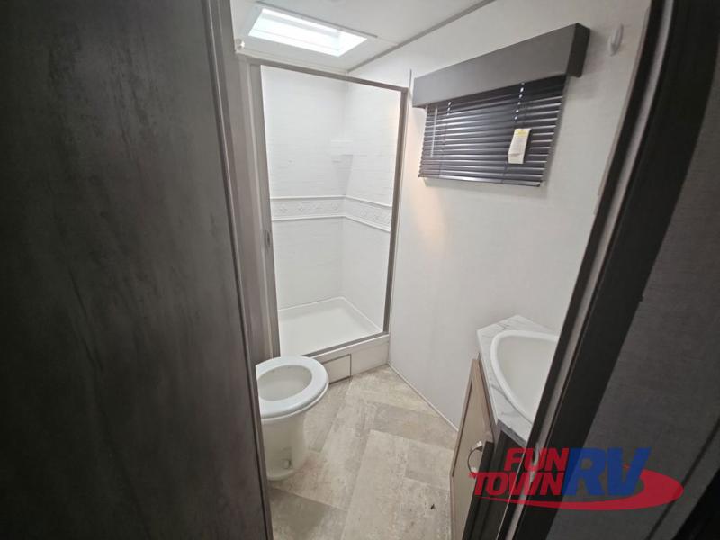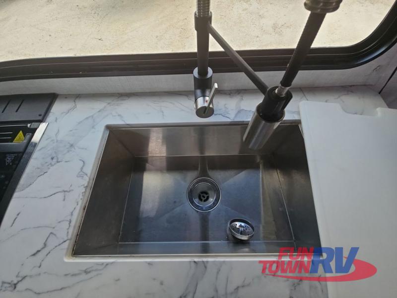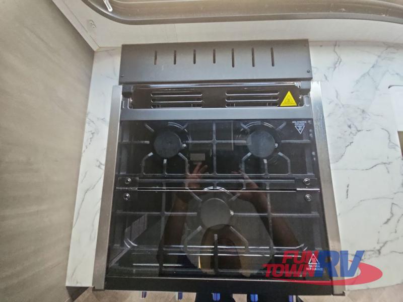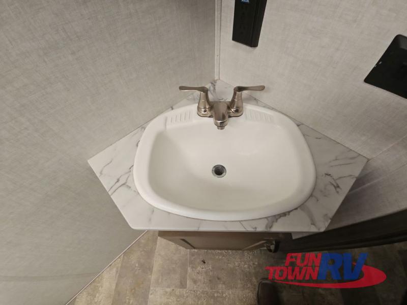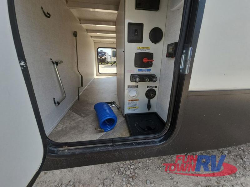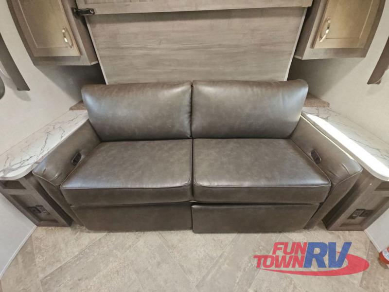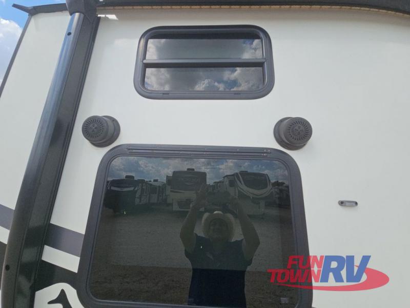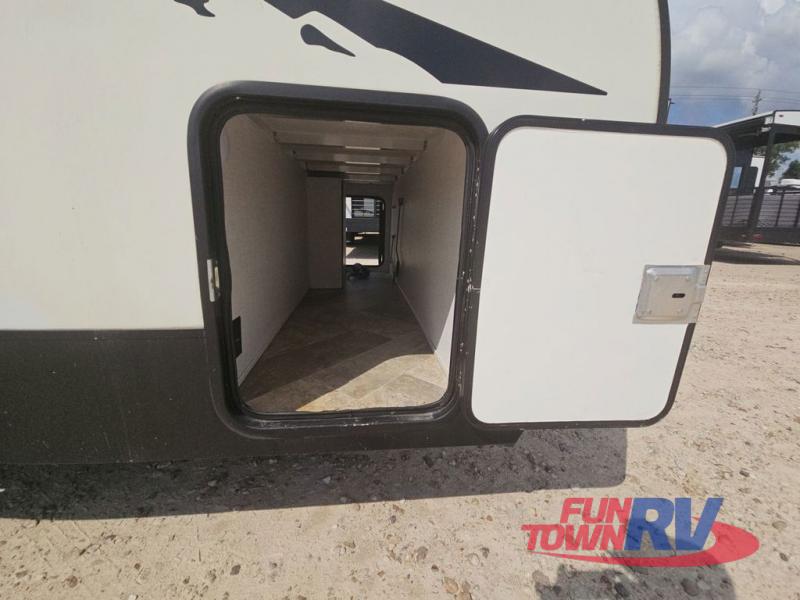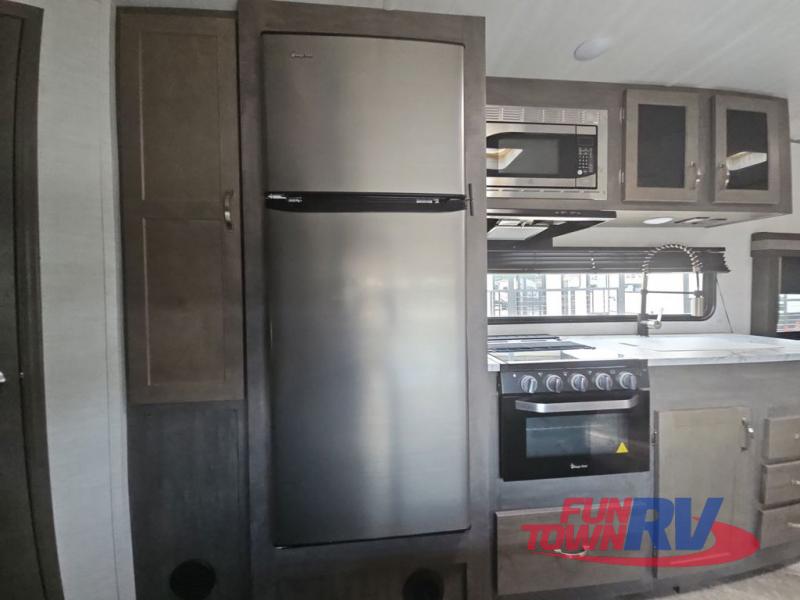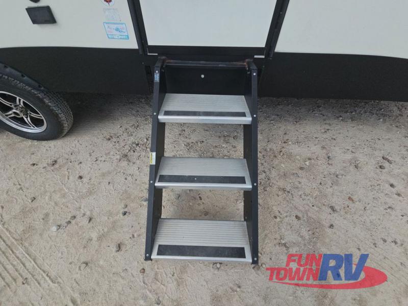 Make plans now for your next camping trip in this Alta travel trailer that can comfortably sleep seven people. The kids will love climbing into the double-sized bunks after a day of playing, and you will love the queen-sized Murphy bed up front. During the day, the sofa in front of the Murphy bed will provide more seating space, and the booth dinette will be great for all your meal times. The chef of the family will have the choice to prepare dinner inside on the cooktop, or use the pull-out grill for hamburgers and hot dogs and the outside refrigerator for more drinks! You will also find plenty of storage, including under the dinette and inside the exterior pass-through storage for items such as fishing poles and tackle boxes.