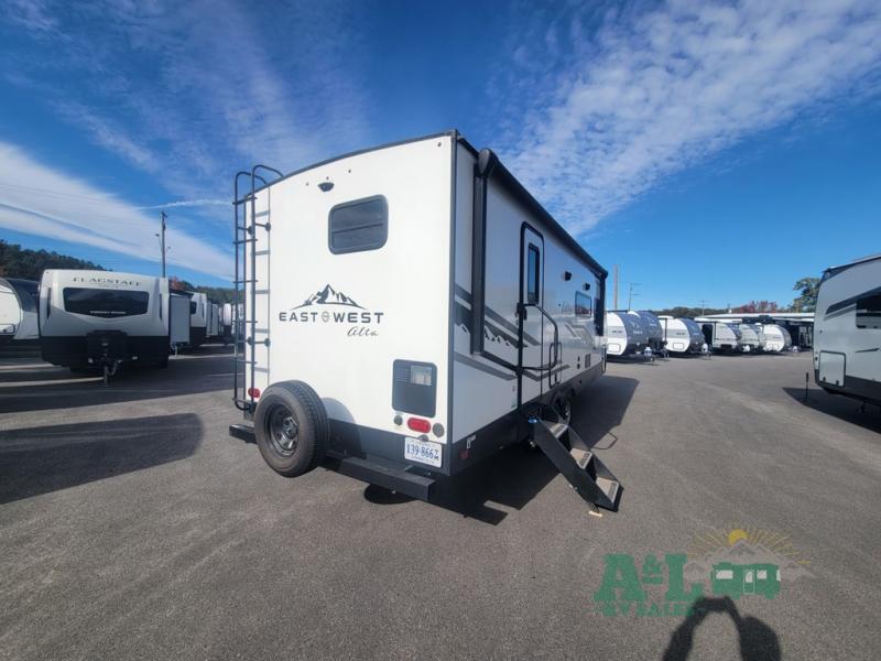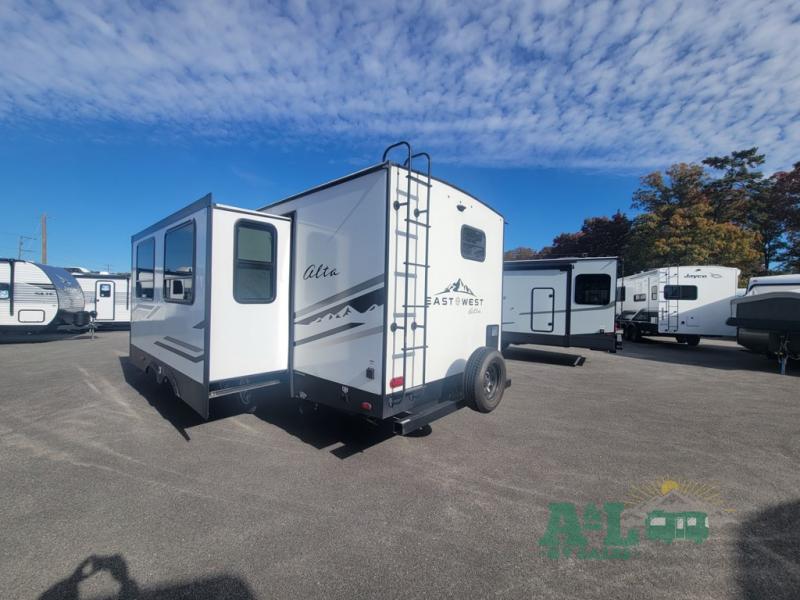 You can go as far as your eye can see with any one of these EAST TO WEST Alta lightweight travel trailers! New 2021 conveniences include a Morryde step with tool box storage, an under bed wardrobe to keep things tucked away, and residential stainless steel appliances with an oversized window package to look out at your beautiful scenery. Don't leave any of your outdoor gear behind, simply store it all in the drop frame pass-through storage with slam baggage doors and 110V power on both sides. The universal docking station not only has a 110V recept, a motion light, and battery disconnect, but also satellite/cable hook ups, a city water connection, and a hot and cold outdoor shower to rinse the mud off your feet before entering inside. Come choose your favorite model today!