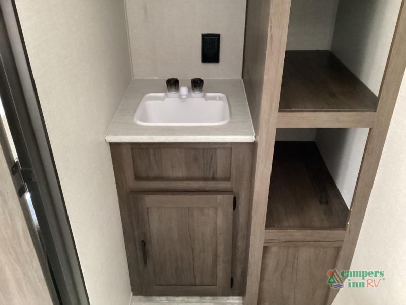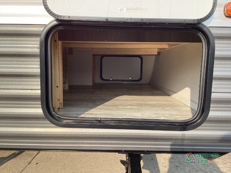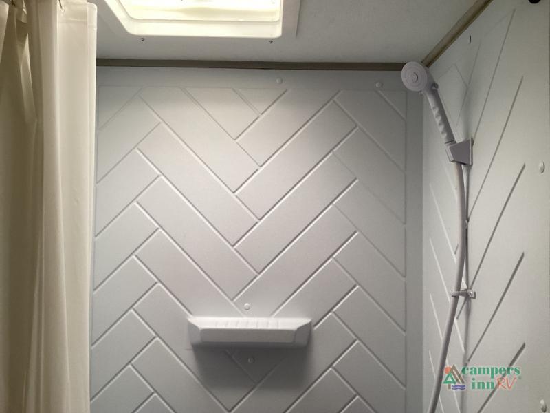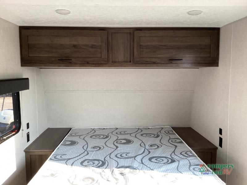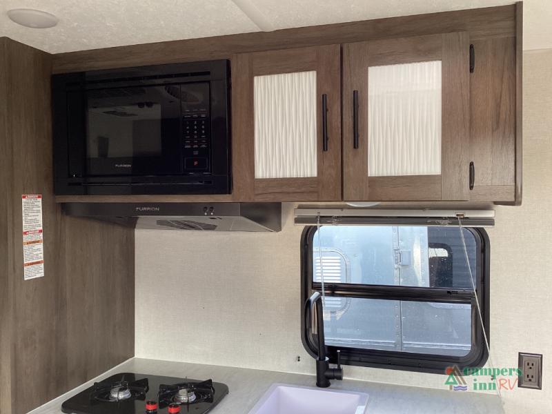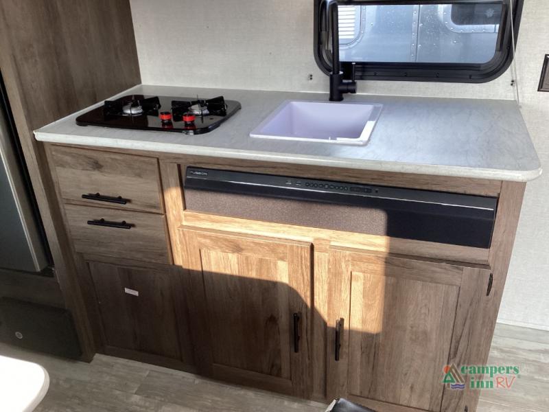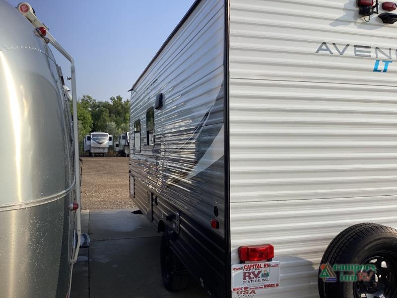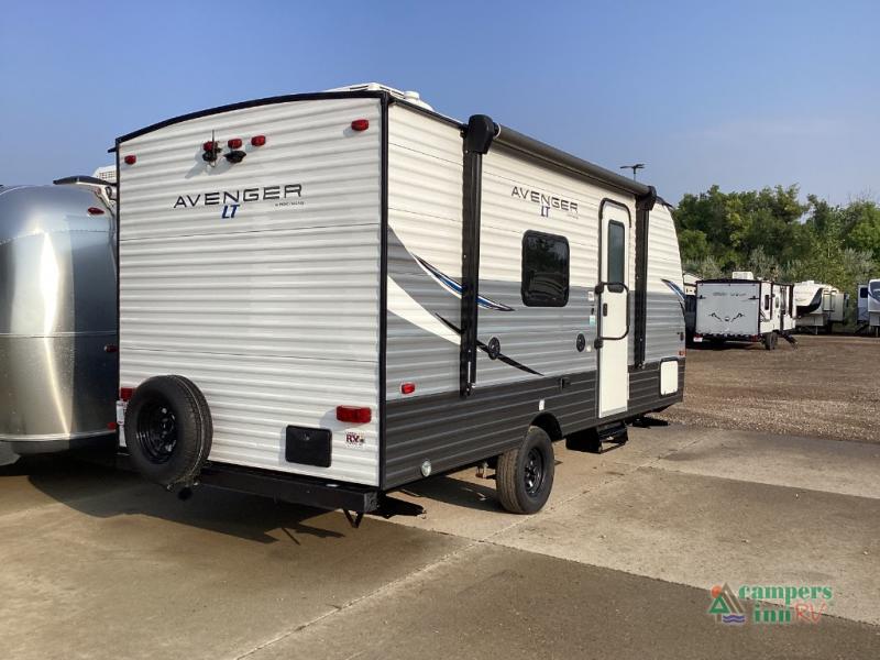 Are you wanting to enjoy a getaway with a couple friends or your spouse? This Avenger LT travel trailer is just what you've been looking for. You'll love spending time outdoors with the LED-lit power awning and outside speakers as you sit around the fire pit with your loved ones. Tired from your day of hiking or swimming? Relax on the front bed with room alongside the bed to hold your valuables. You'll appreciate the exterior shower to clean off after a day of sightseeing with family, and you'll enjoy the kitchen skylight as you cook with the two-burner cooktop or microwave.
