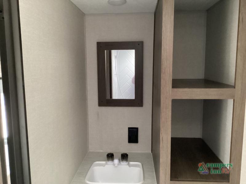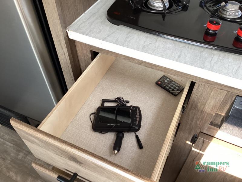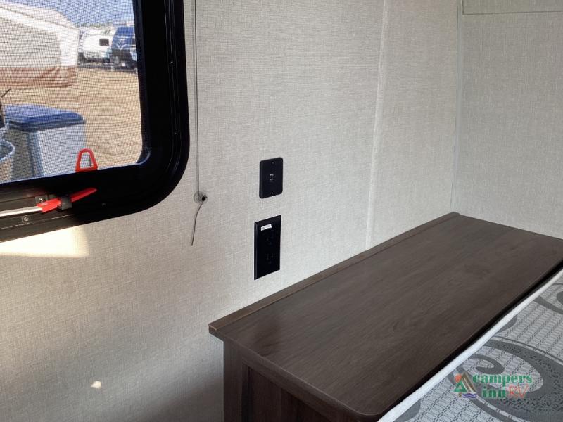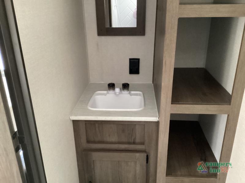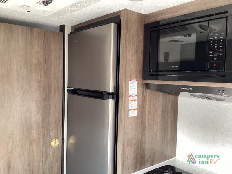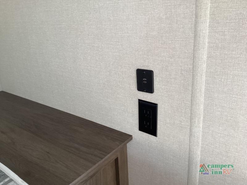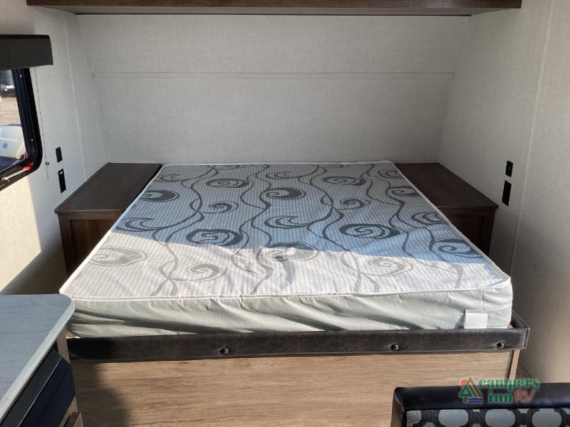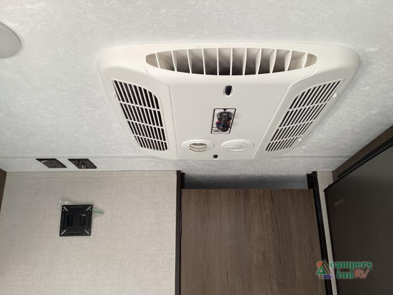 Are you wanting to enjoy a getaway with a couple friends or your spouse? This Avenger LT travel trailer is just what you've been looking for. You'll love spending time outdoors with the LED-lit power awning and outside speakers as you sit around the fire pit with your loved ones. Tired from your day of hiking or swimming? Relax on the front bed with room alongside the bed to hold your valuables. You'll appreciate the exterior shower to clean off after a day of sightseeing with family, and you'll enjoy the kitchen skylight as you cook with the two-burner cooktop or microwave.