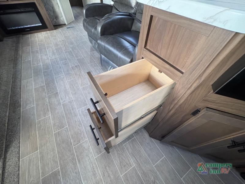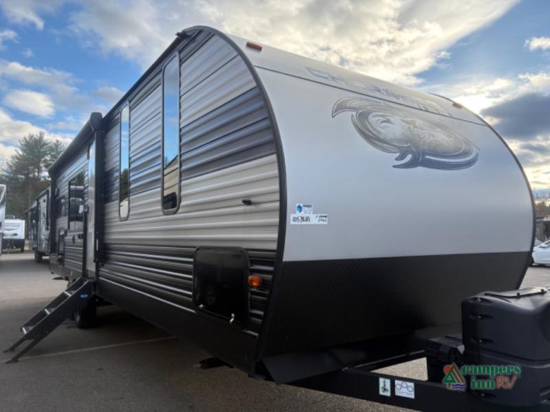 Answer the beckoning call with one of these Forest River Cherokee travel trailers or toy haulers! With a Power Gearâ„¢ frame technology, a premium wheel package, an armored underbelly tank enclosure, and seamless roofing membrane with heat reflectivity, you will enjoy a unit that will last through any adventure. The Chef Select black stainless steel kitchen suite package gives you the ability to prepare delicious home cooked meals even in the woods. The supersized, 15,000 BTU central air conditioning unit has a quick cool air dump feature to keep you cool even on the hottest summer days. You can also rinse off your feet before entering the unit with the outside shower with hot and cold water. Come take a look at all the other features!