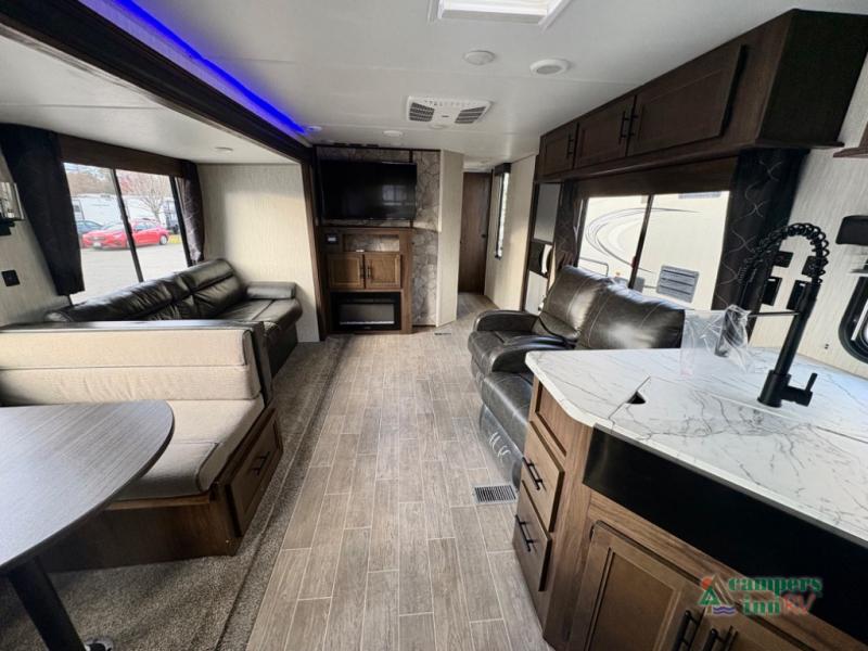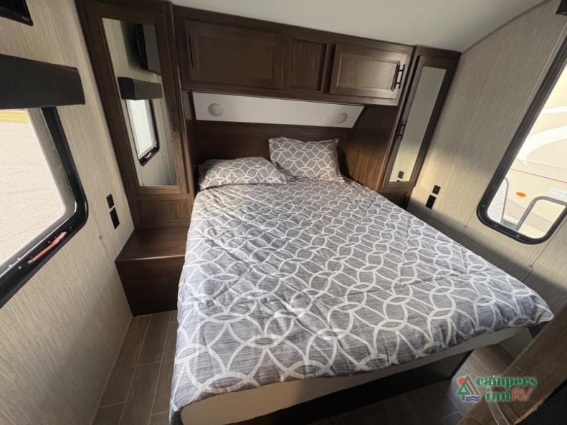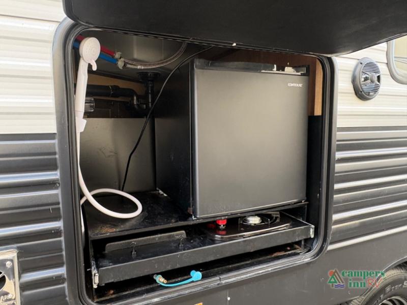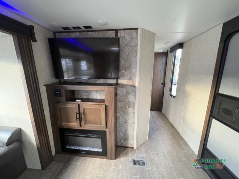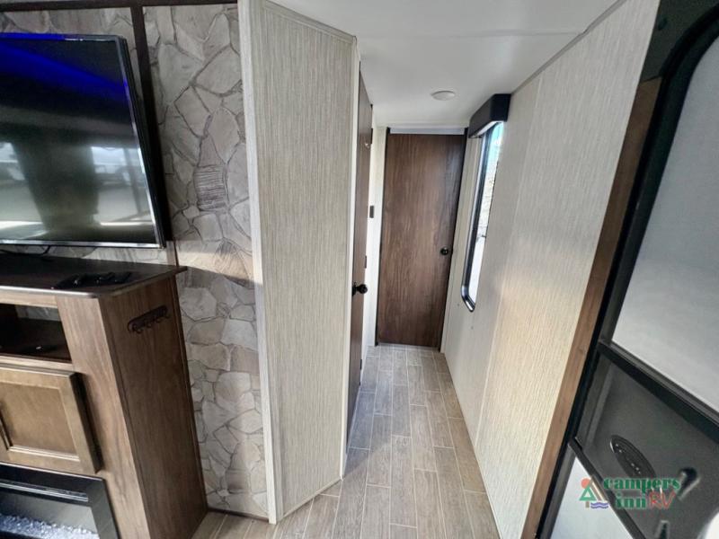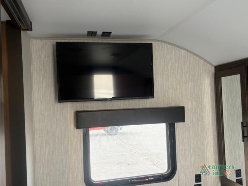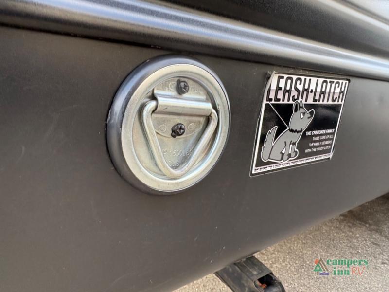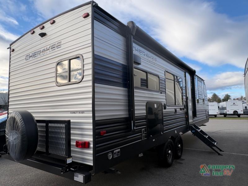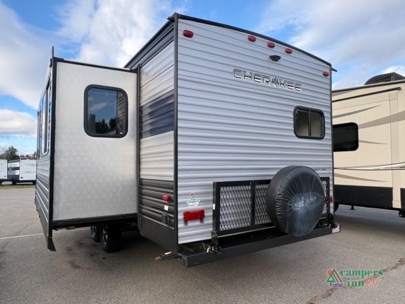Fall in love with everything about this single-slide Cherokee travel trailer by Forest River. This model features a rear kitchen where you can easily prepare your favorite meals for your family. After you set up camp outside, come inside and relax on the sofa or booth dinette which can both be easily converted into additional sleeping space at night. The bathroom can be accessed from one of the two entry doors that lead into the main hallway and the master suite. Outside, enjoy the extra storage space with the pass-through storage, an outside kitchen, and an outside TV mount!