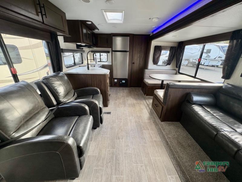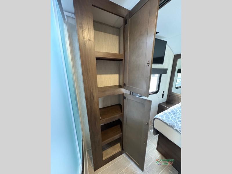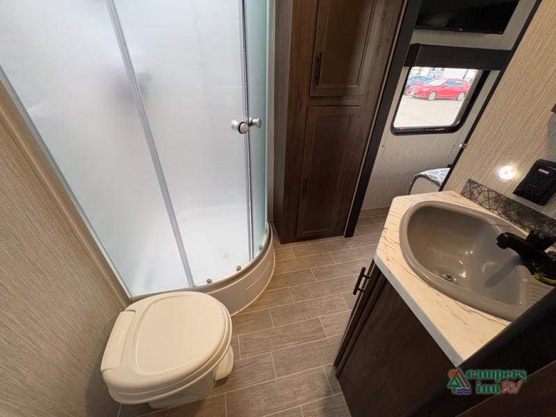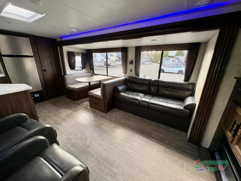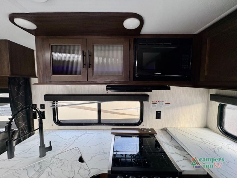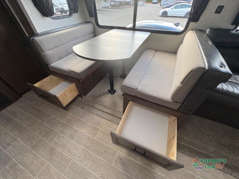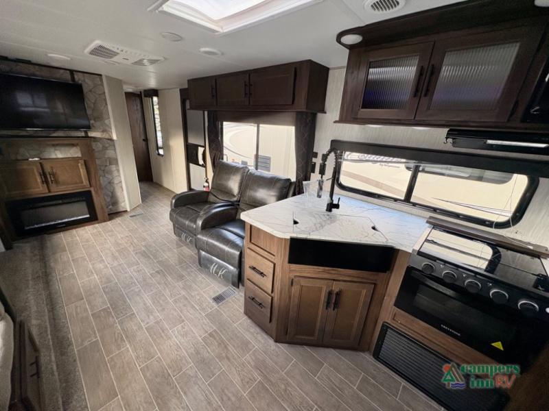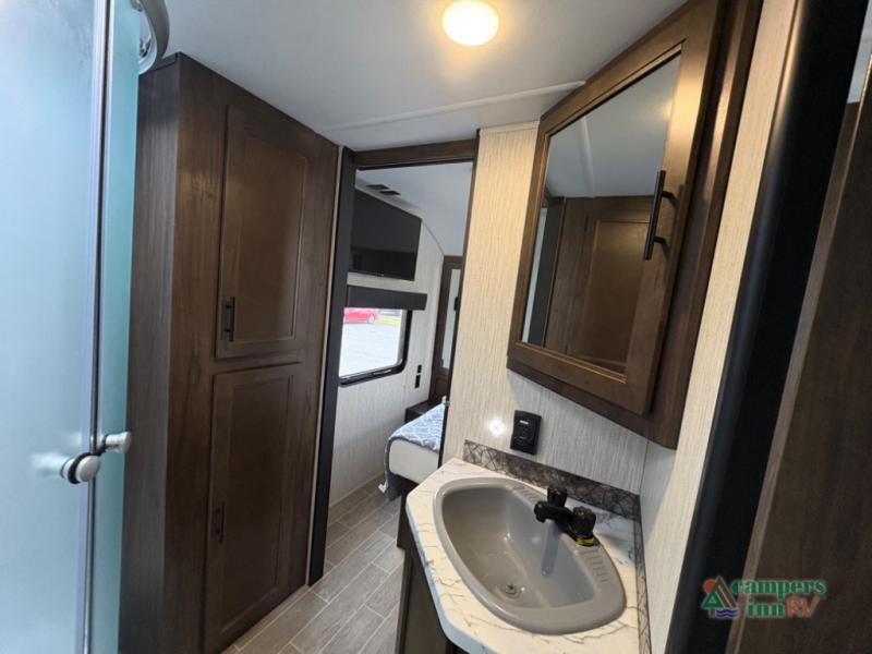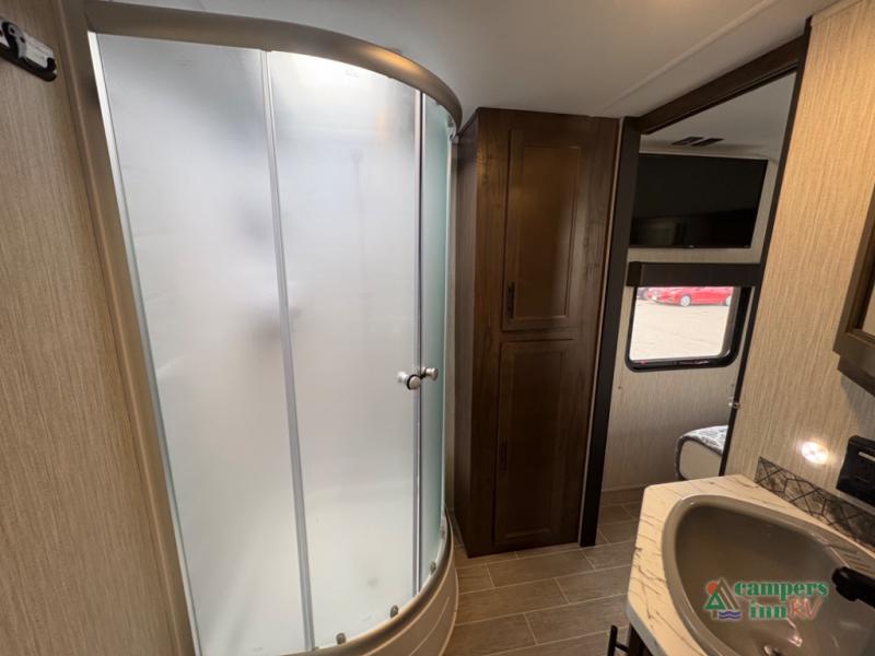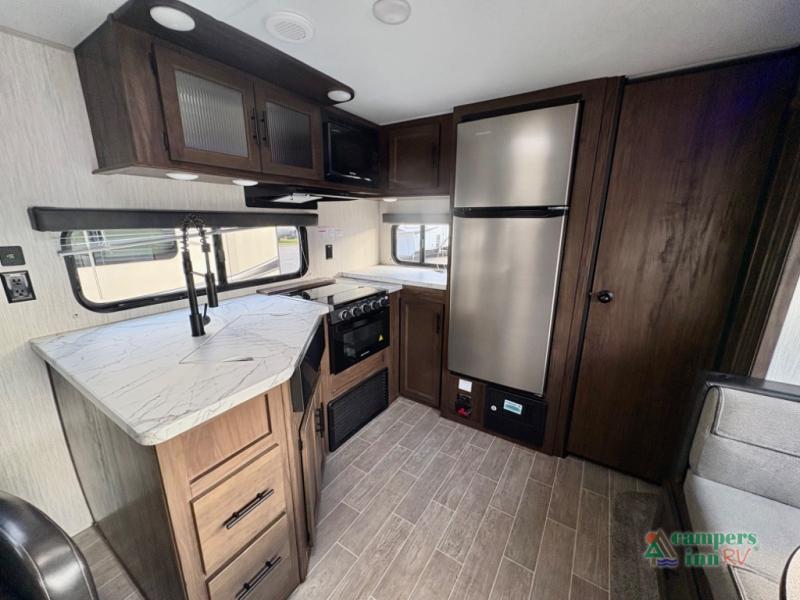 Fall in love with everything about this single-slide Cherokee travel trailer by Forest River. This model features a rear kitchen where you can easily prepare your favorite meals for your family. After you set up camp outside, come inside and relax on the sofa or booth dinette which can both be easily converted into additional sleeping space at night. The bathroom can be accessed from one of the two entry doors that lead into the main hallway and the master suite. Outside, enjoy the extra storage space with the pass-through storage, an outside kitchen, and an outside TV mount!