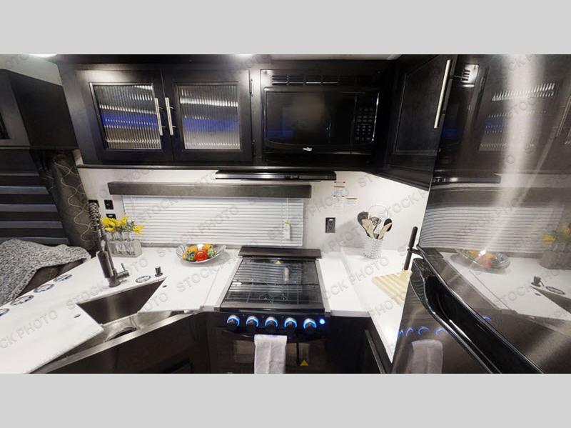 Enjoy comfortable seating, panoramic windows, and a private queen bedroom with wardrobes. The walk-through bath includes a roomy shower and vanity, blending practicality with privacy. This model feels residential, yet it’s light enough for many half-ton trucks.
