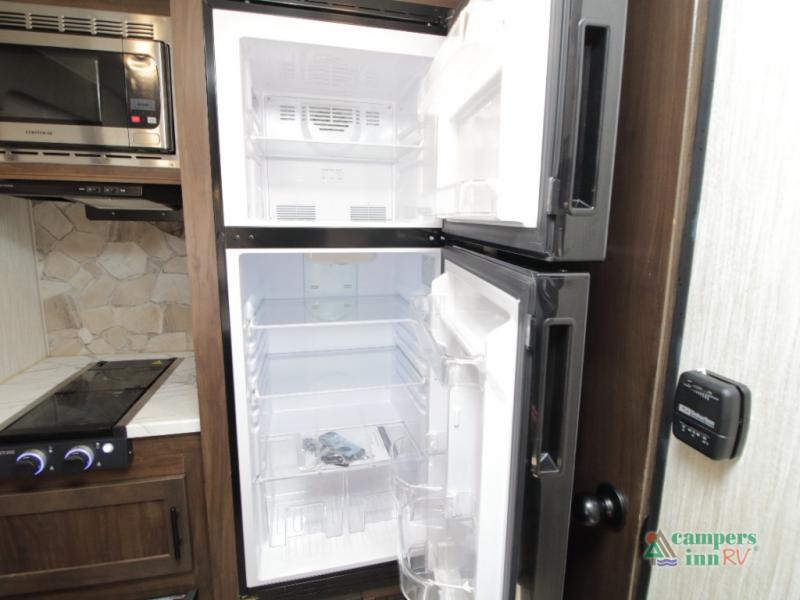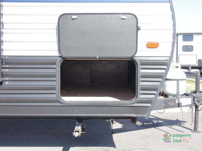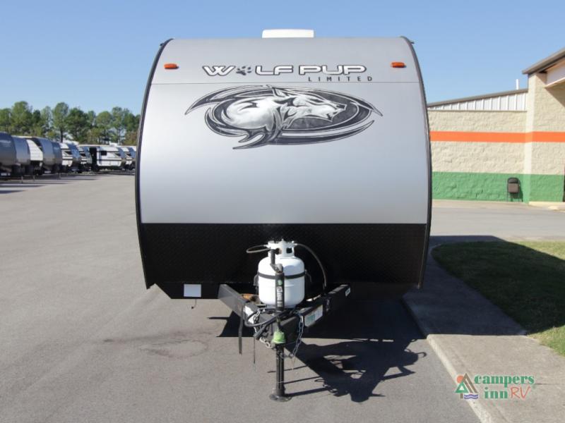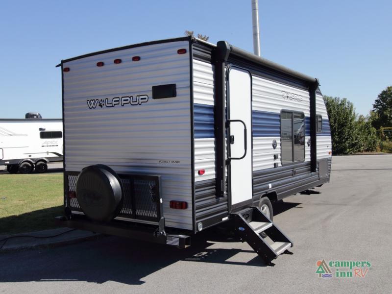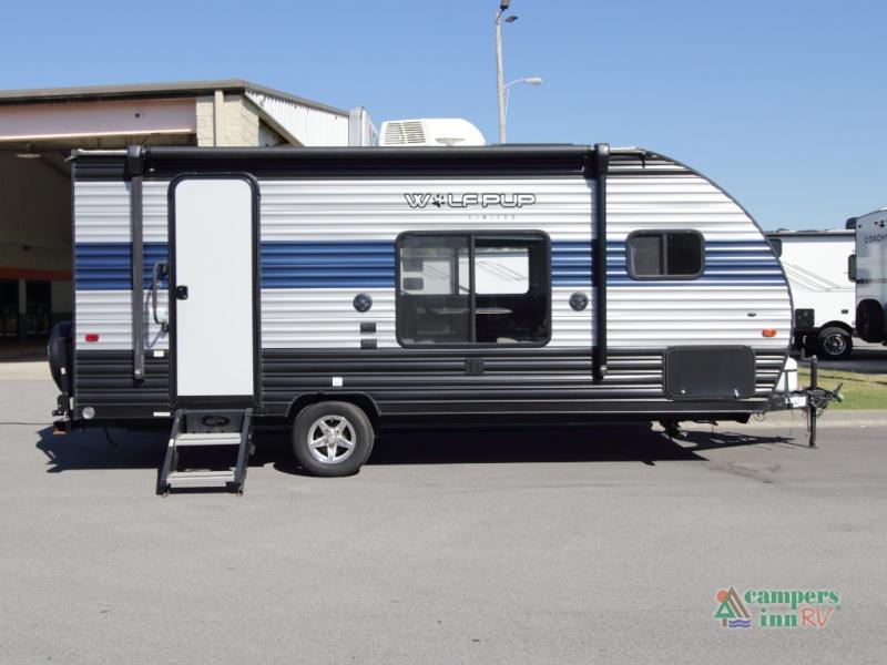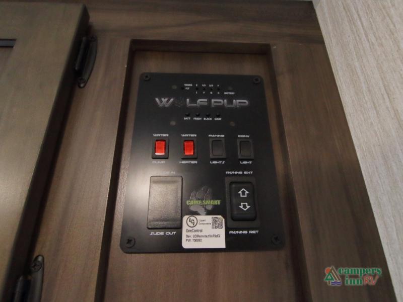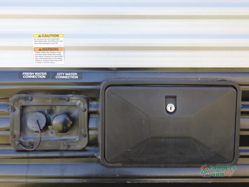 The Cherokee Wolf Pup lineup by Forest River is designed for simplicity, efficiency, and reliability. The aerodynamic radius front profile improves fuel efficiency on the road, and the one-piece walkable roof makes cleaning and maintenance easy. You’ll also appreciate convenient touches like the outside shower with hot and cold water, seamless countertops, and ample exterior storage for all your camping gear.