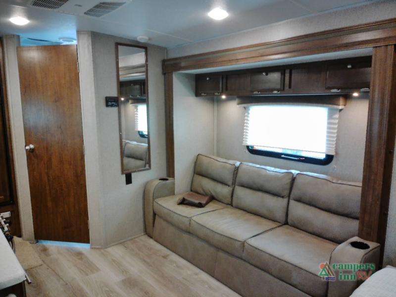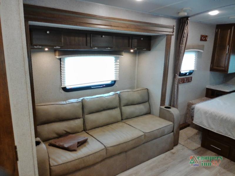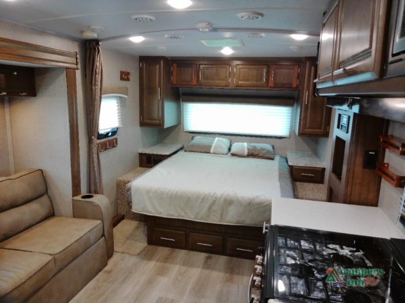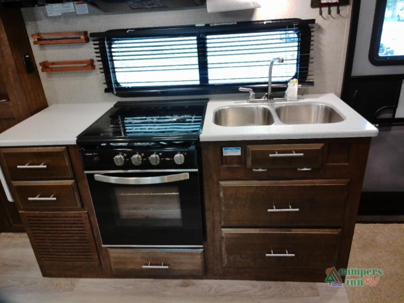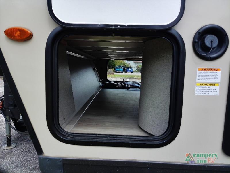 For the couple who is ready to get out and enjoy nature, this Flagstaff Micro Lite travel trailer is ideal for you! This unit has all of the basic amenities, like a rear corner bath with a radius shower and a front RV queen bed that makes for a comfy night's rest. The slide out with the 72" sofa provides extra interior space so that you won't feel cramped. You'll also be able to enjoy your meals here with a table in front of the sofa. After swimming all day working up your appetite, come back to this unit and cook a meal on the three-burner cooktop! This travel trailer features a pass-through storage for your larger camping items, plus an exterior storage to hold the kids' outdoor games.