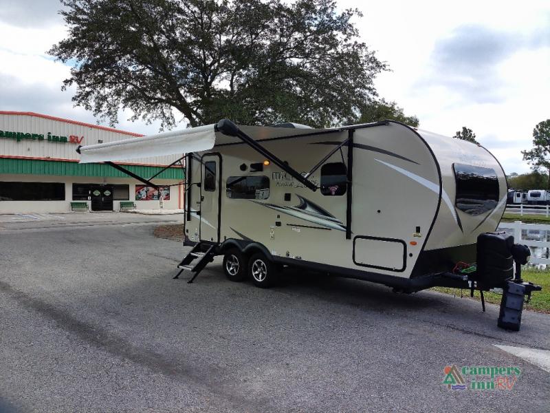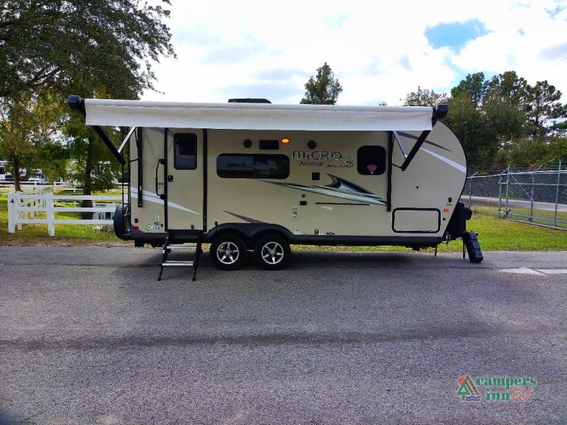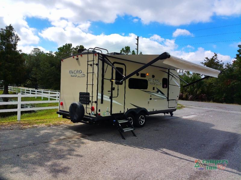 The Forest River Flagstaff Micro Lite travel trailer gives you the freedom to tow with your SUV or Minivan! Even though these trailers are lightweight, they still pack a punch when it comes to accommodating features and comfortable amenities. The Flagstaff Micro Lite has an enclosed underbelly, four frame-mounted stabilizer jacks, Torsion Axle, Rubber-Ryde suspension, a fully aluminum frame, and a lower front diamond plate panel. With its Teton All In One WiFi Booster/LTE prep, multi-zone stereo with DVD/CD/AM/FM/Bluetooth, MP3 player hook-up, and TV antenna with cable and satellite hook-up, you'll have plenty of modern technology to keep you occupied while you're away. Some other features that will make trips easier are the power awning with adjustable rain dump and LED lighting, the outside shower, an outside antifreeze station, and the 2" hitch receiver.
