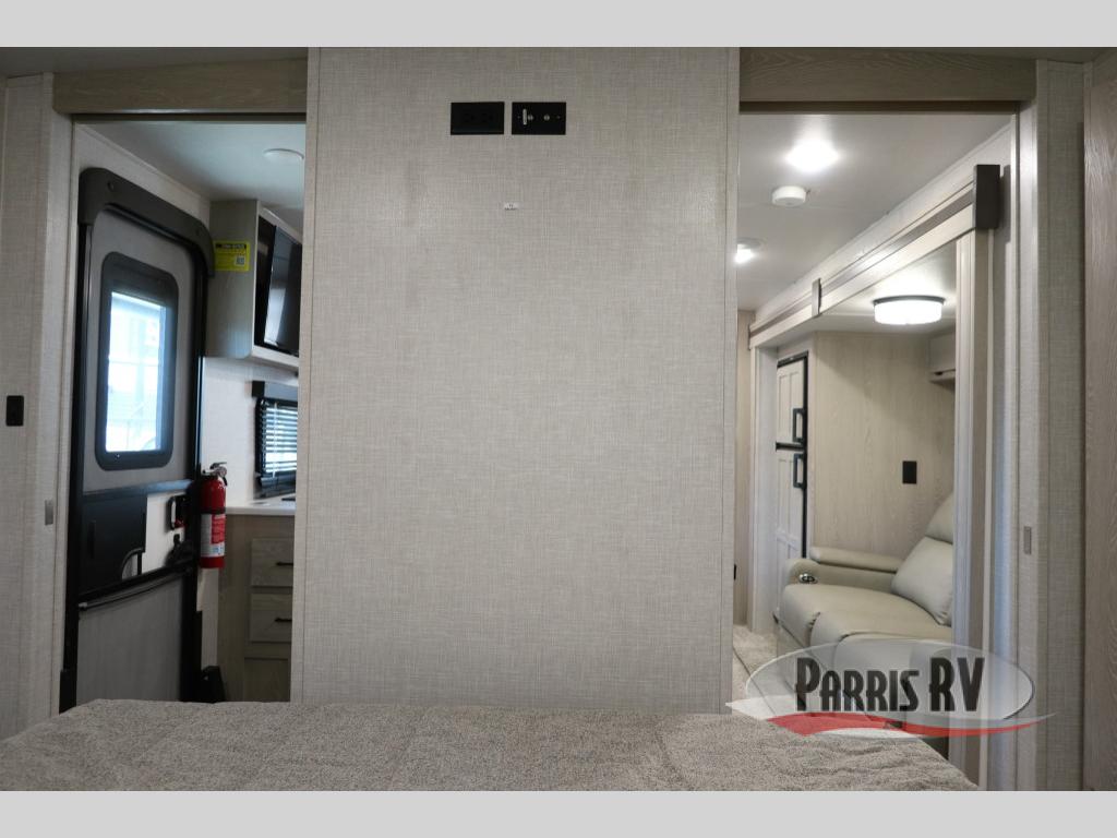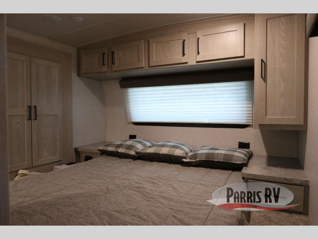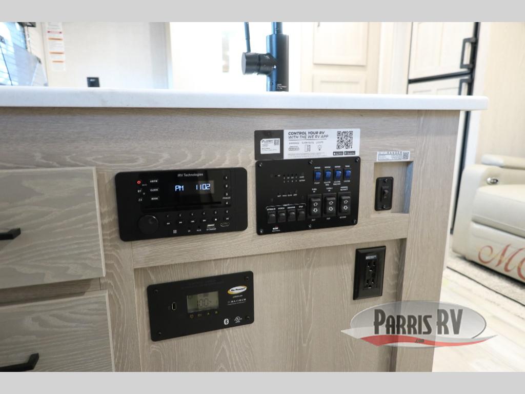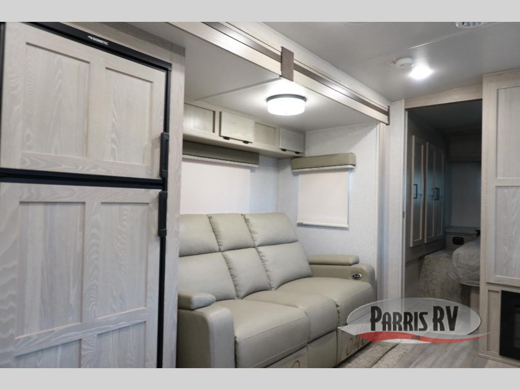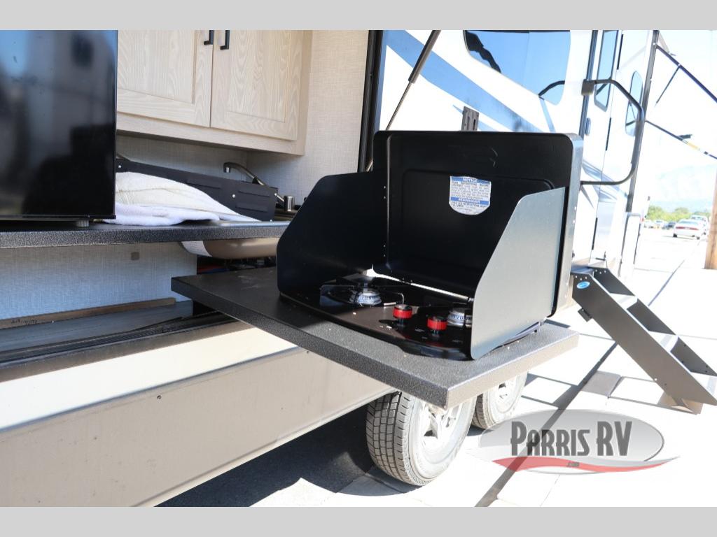 This excellent Flagstaff Micro Lite travel trailer has just what you want! There is a private bedroom with an RV queen bed and wardrobe slide, and the kitchen provides you with a three-burner range, gas oven, double-bowl sink, and countertop extension. The 67" theater seating is perfectly placed to enjoy the warmth of the fireplace, and there are also two pantries so that you can grab a snack before sitting down to relax. The rear bathroom is full of all of the essentials, and there is also an outdoor kitchen on this model so that you can stay outside even while you are preparing dinner.