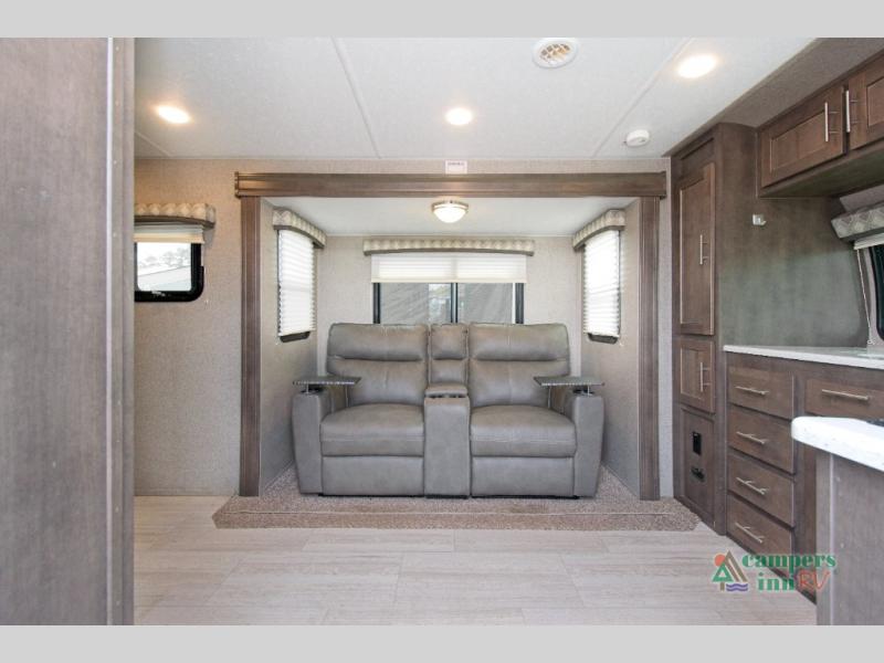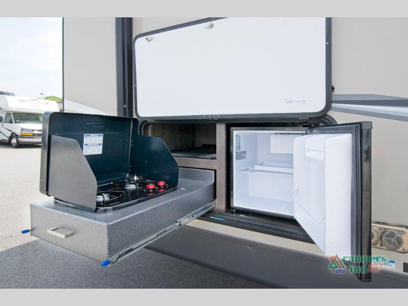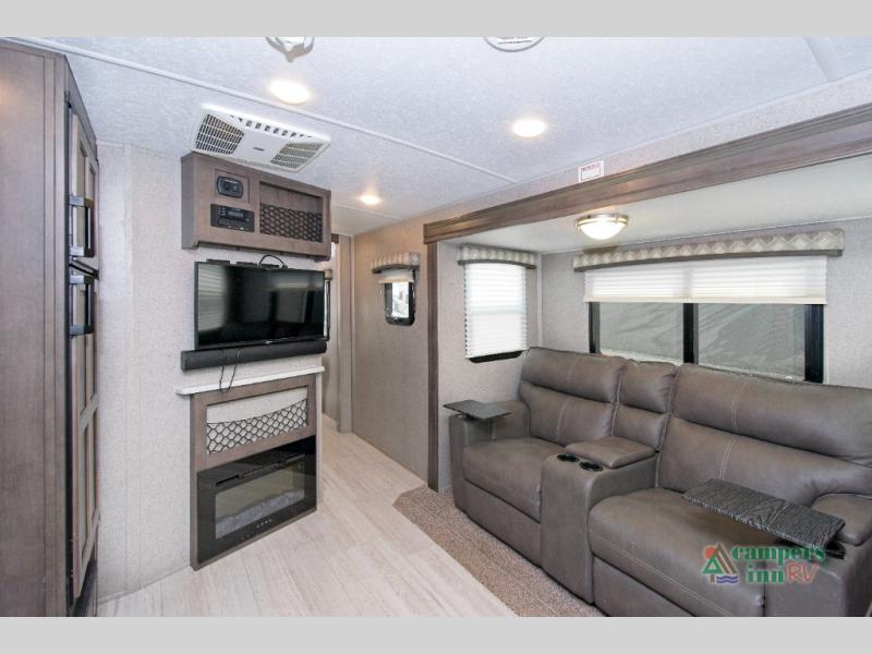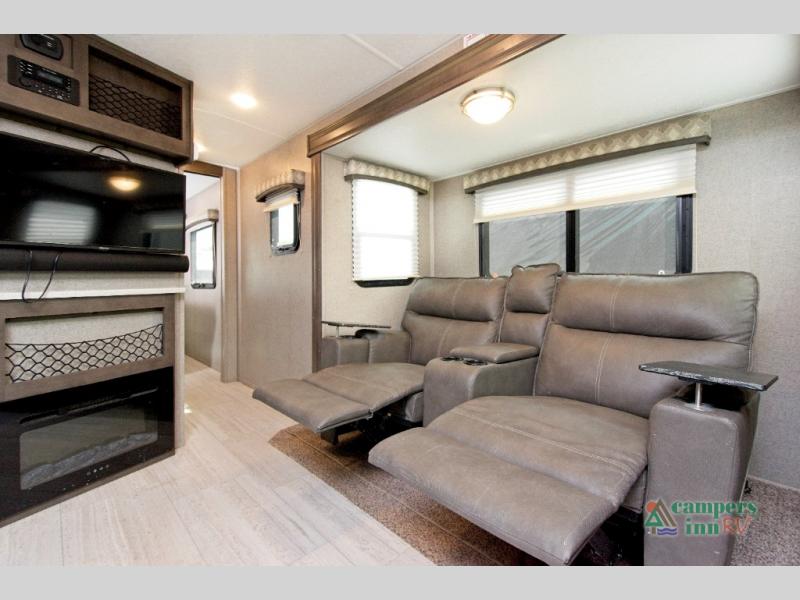 Enjoy cozy evenings by the fireplace, or gather for movie nights with the built-in LED TV and multi-zone entertainment system. Step outside to cook breakfast on the pull-out outdoor grill, and take advantage of the power awning with LED lighting for shaded relaxation.