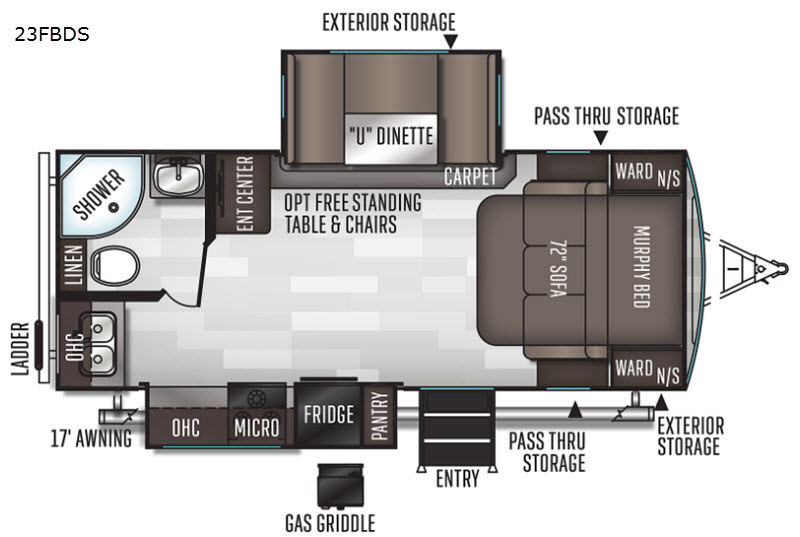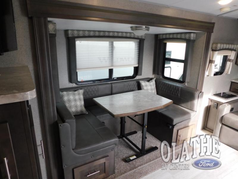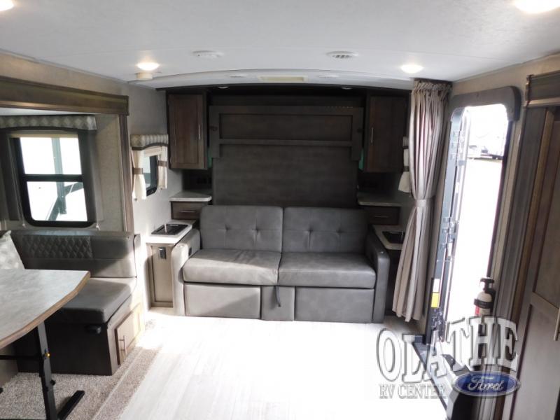 Depending upon the time of day that you enter this double slide out travel trailer will determine if you see the sofa or the Murphy bed. You will find additional sleeping space for your kids or a guest or two at the U-dinette. You can cook full meals with all the appliances, and in the evening plan to visit outdoors under the 17' awning with LED lights, plus you can enjoy a little music with the exterior speakers. There are even options to choose from to make this the perfect trailer for you!