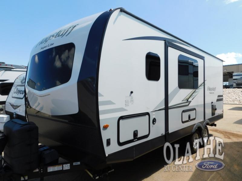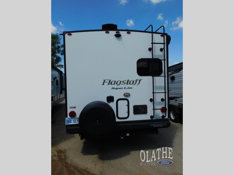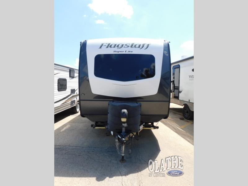 It will be easy to make plenty of memories with your family when you choose to camp with a Flagstaff Super Lite travel trailer by Forest River. These models have beautiful slatewood cabinetry with hardwood cabinet doors and drawer fronts, solid surface kitchen countertops, and ceiling LED 12 volt interior lighting. The 6 sided aluminum cage construction offers lightweight towing, the radius roof with interior vaulted ceilings give you more headroom, the WiFi ranger Wifi booster Sky 4, the enclosed underbelly, and the power awning with adjustable rain dump and LED light strip, will give you years of enjoyment!