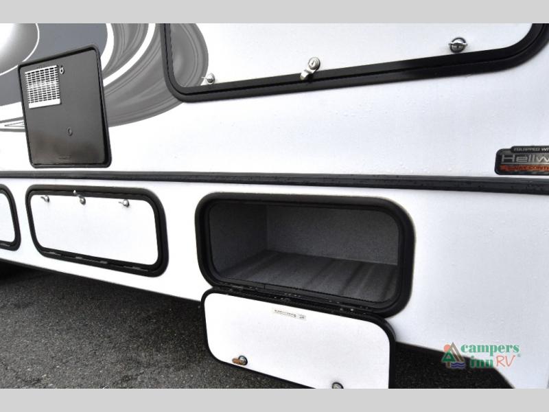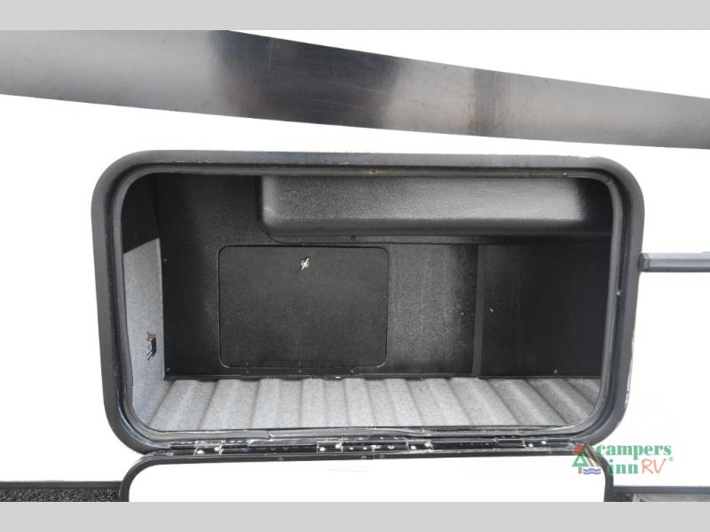 Pass-through exterior storage for gear, chairs, and camping essentials