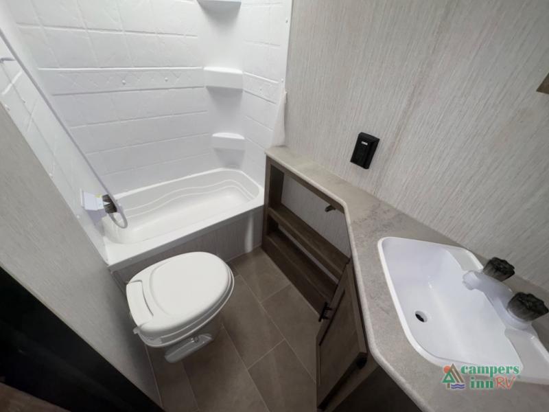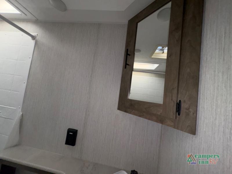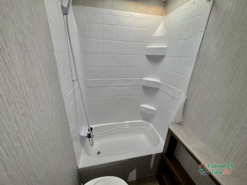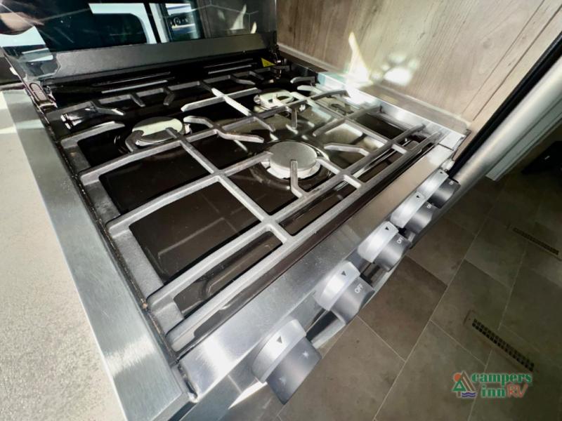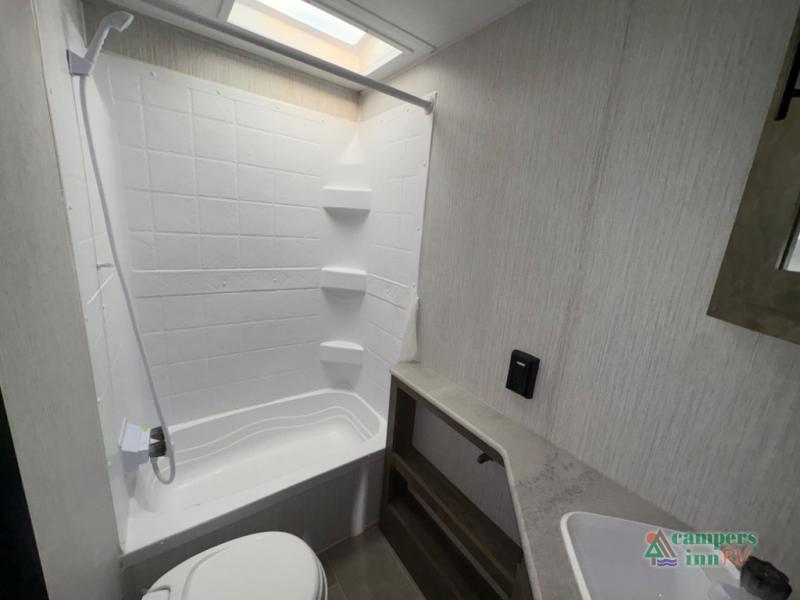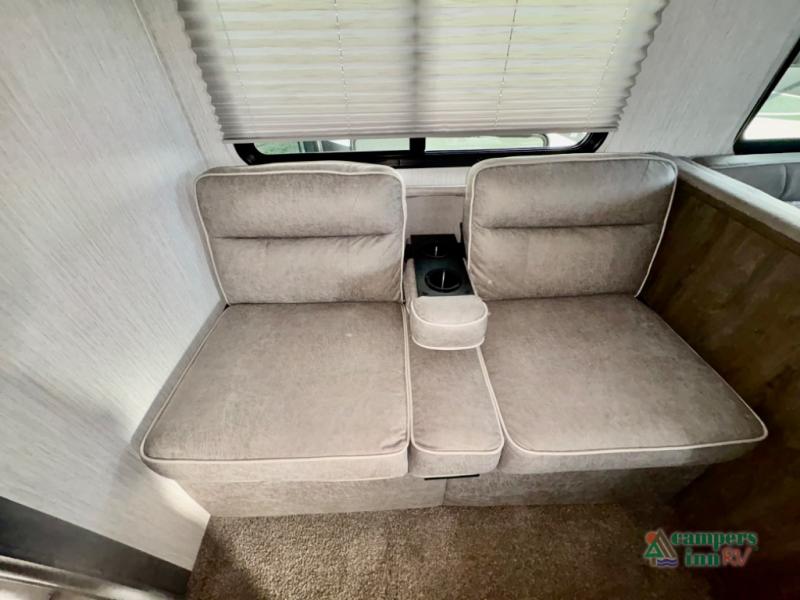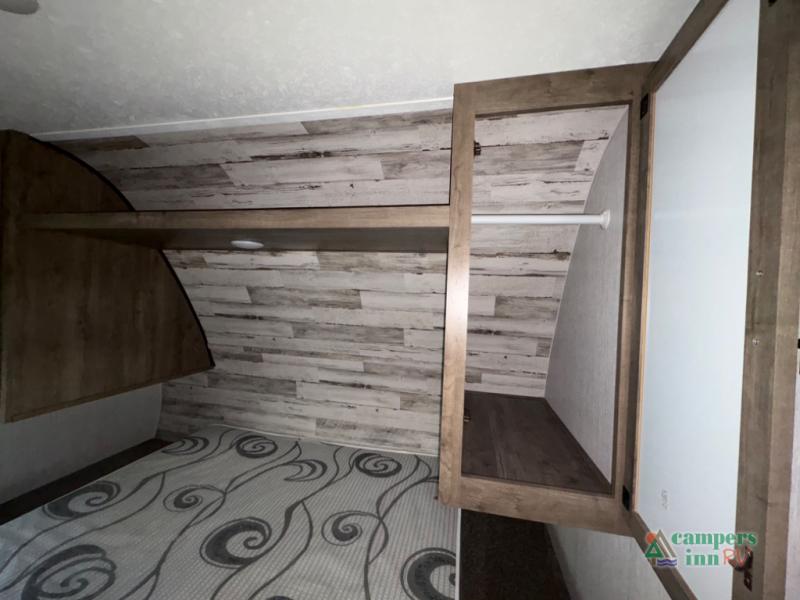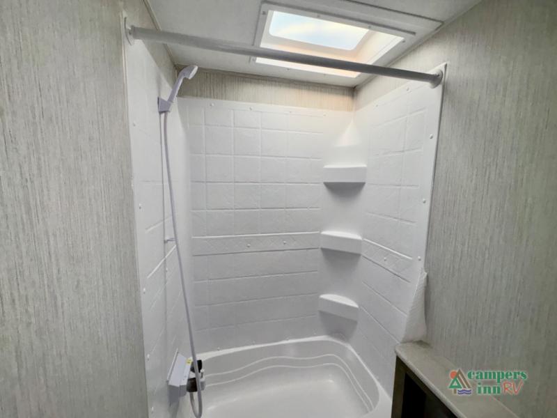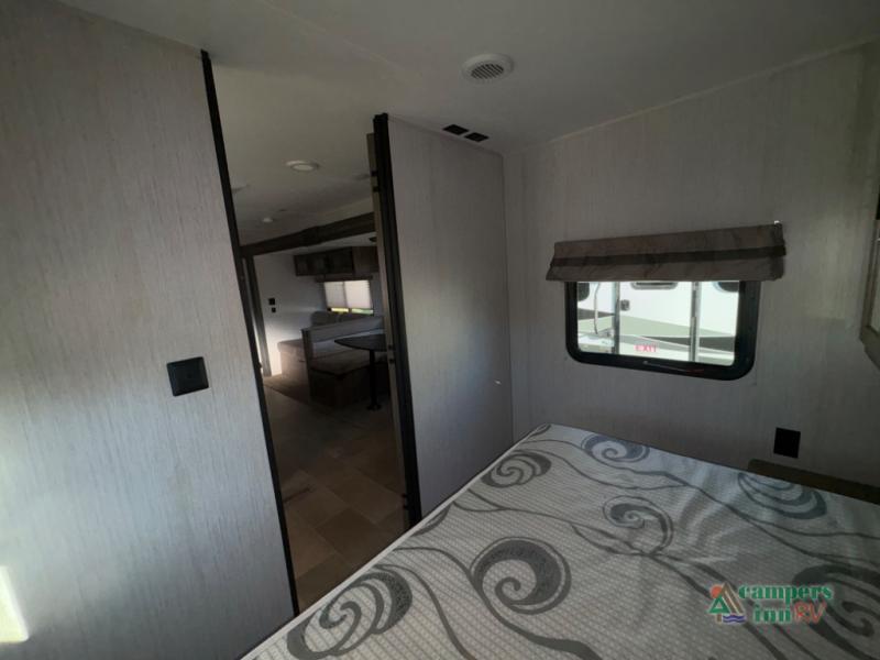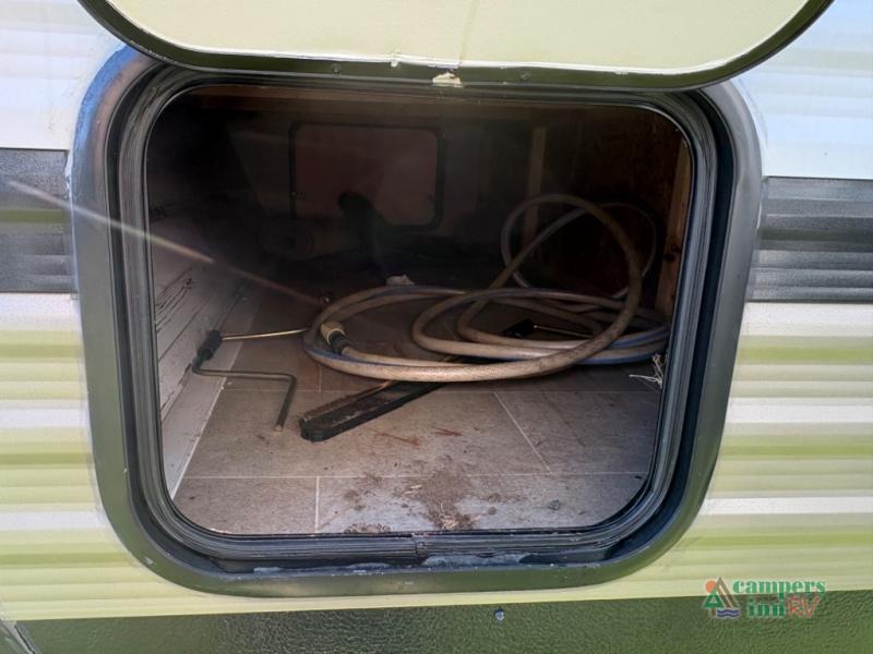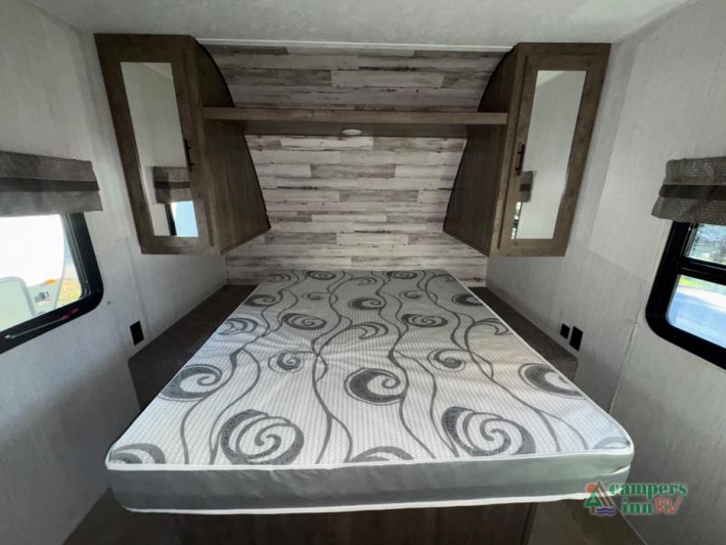 Now the whole family or group of friends can come along in this travel trailer that can sleep up to ten people each night. You'll find plenty of storage space for all your belongings, including storage under the double-size bunks, a wardrobe and pantry in the kitchen, plus an exterior pass-through storage for tackle boxes and lawn chairs. Within the large slide out you'll find the sofa and U-shaped dinette that will be perfect for relaxing, meal times, and additional sleeping space. The chef of the family can prepare meals on the three burner cooktop or use the stainless steel microwave for quick lunches. If you're wanting to cook in the fresh air, just choose the optional mini camp kitchen that will go perfect with the electric awning and outside speakers.