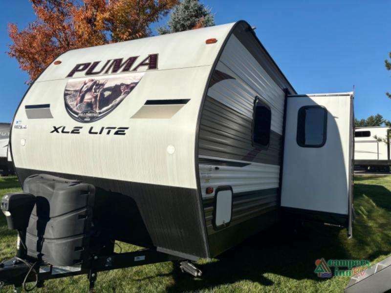The lightweight and convenient Puma XLE Lite travel trailers and toy haulers by Palomino are ready to go when you are! Inside, you'll enjoy the Beauflor linoleum, the Satin Nickel hardware, light and bath fixtures, plus tinted windows and night shades for privacy. The exterior includes features to make camping hassle-free, like the outside shower, the front and rear stabilizer jacks, and the electric awning. Each model features Wi-Fi prep, solar prep, and back-up camera prep for your convenience, and the standard USB charging ports will allow you to keep your favorite gadgets charged and ready to go. Constructed with durable materials such as, an Alpha Superflex roof, powder coated frames, and front diamond plate, these models will last your family through years of family fun and memories!