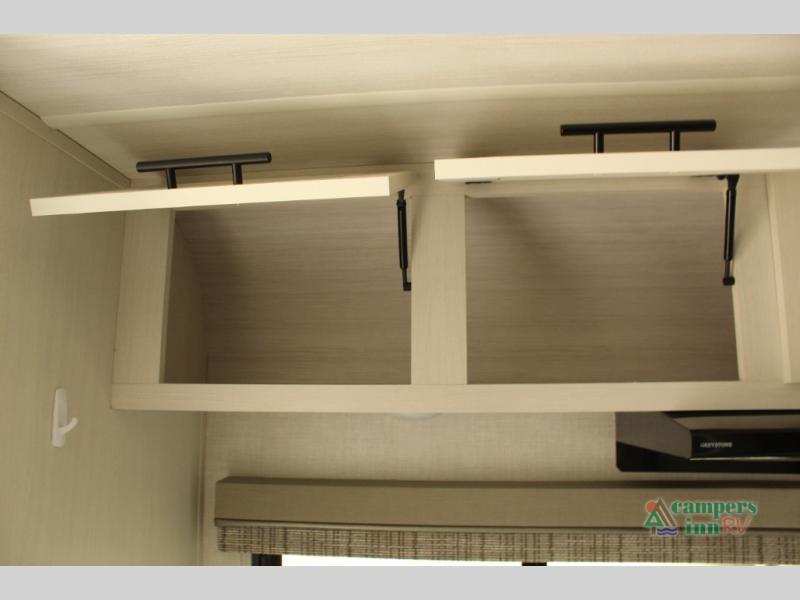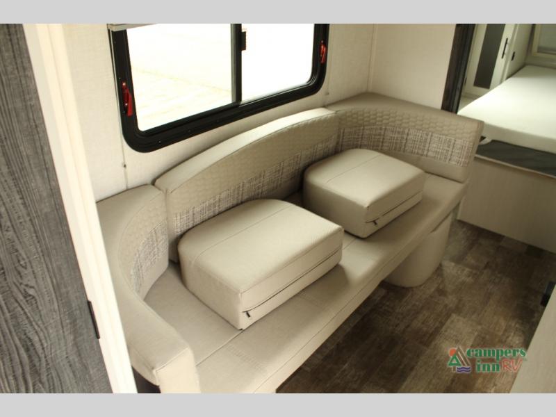 The slide-out dinette offers comfortable seating and a great place to dine, work, or play games. The large front window lets in tons of natural light and gives you incredible views wherever you’re parked. Plus, the dinette easily converts to extra sleeping space if needed.