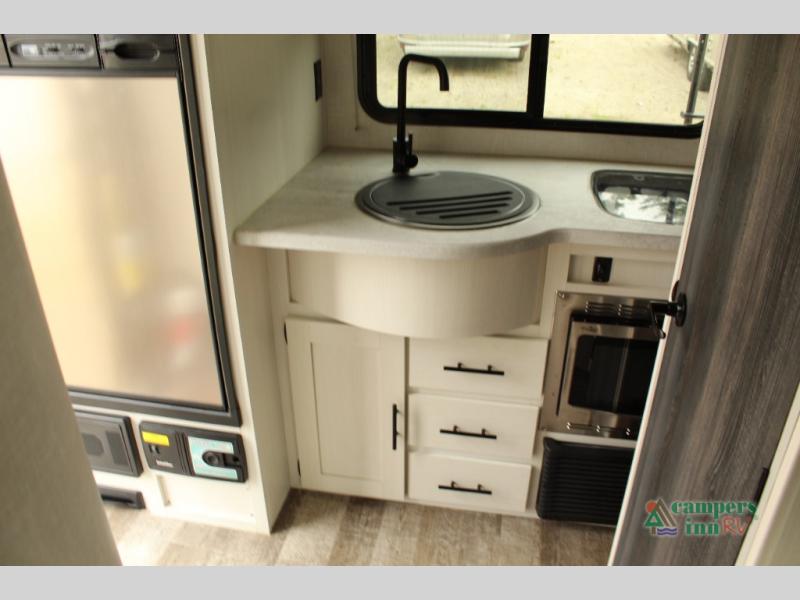 The 2021 RP-195 includes solar prep, a roof-mounted antenna, and ample storage for gear and supplies, making it ideal for boondocking or camping in more remote locations. Add solar panels, and you’ve got yourself a cozy off-grid basecamp.