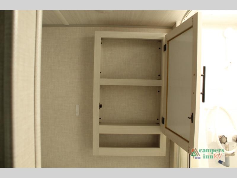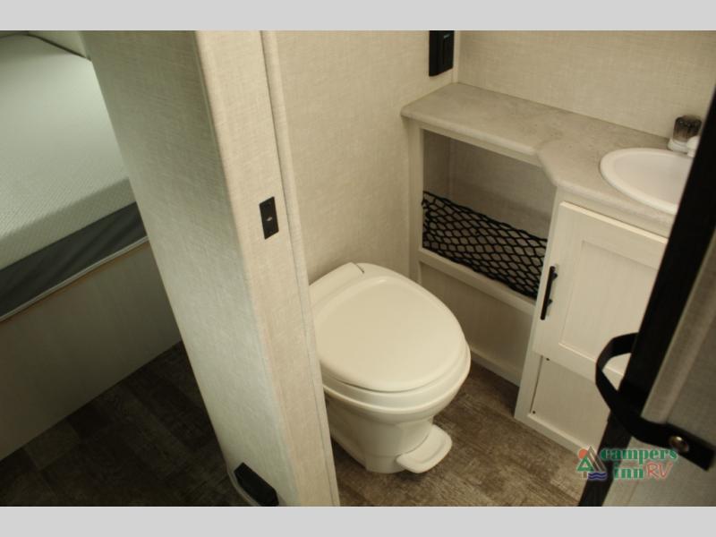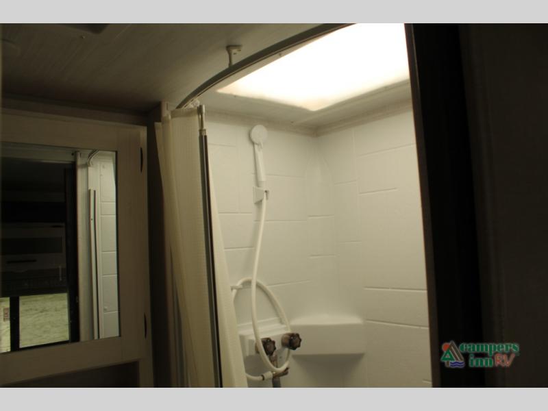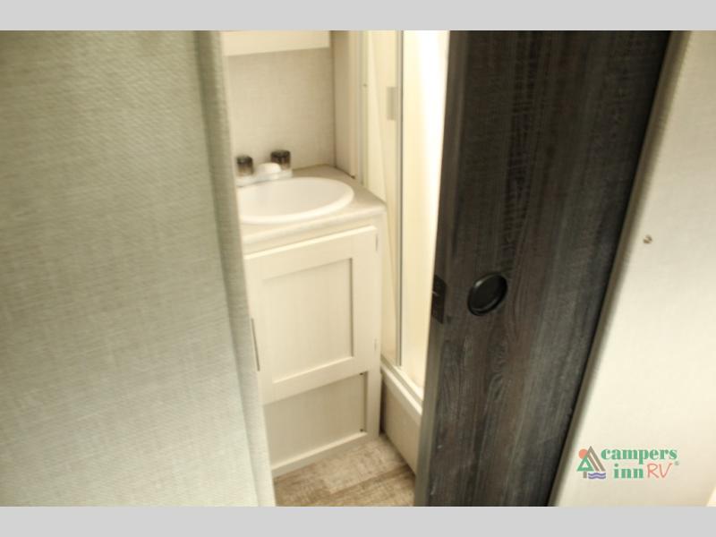 One of the standout features of the RP-195 is the spacious rear bath with a separate shower, vanity, and foot-flush toilet. It provides a private, comfortable space to refresh after long hikes or beach days — no need to rely on campground facilities.