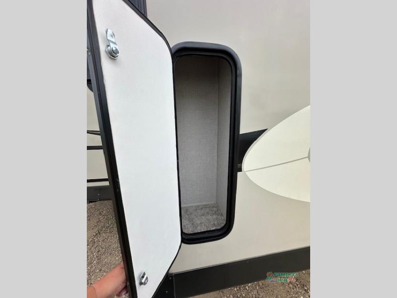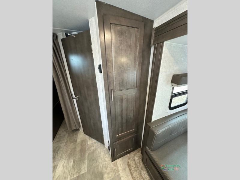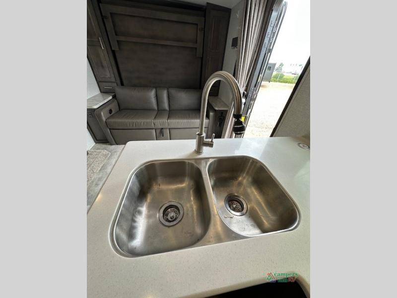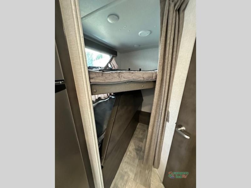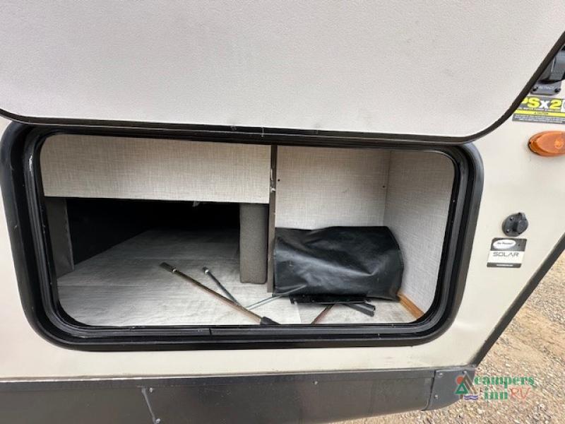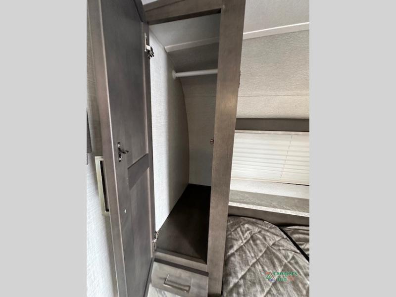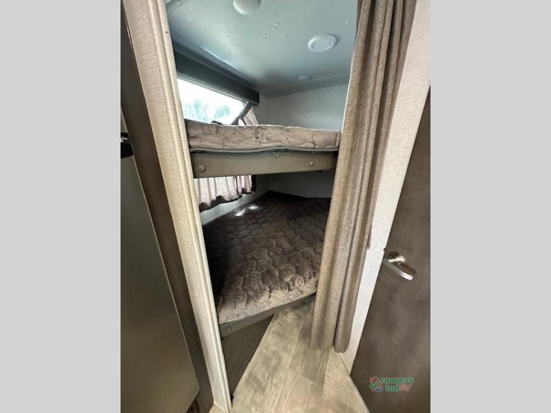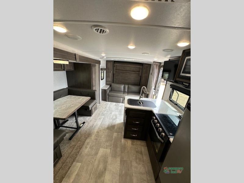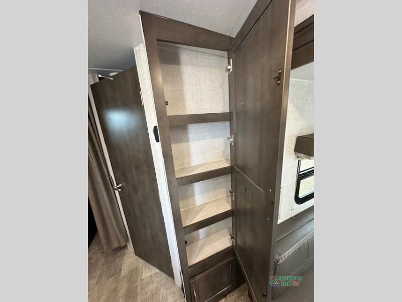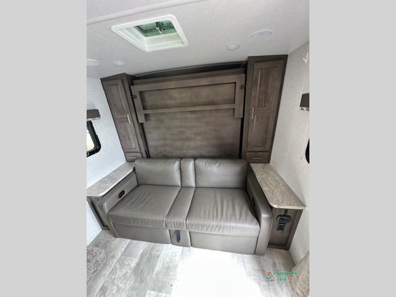 Your search is over for the perfect family-friendly travel trailer! The kids are sure to love the double-size bunks, while mom and dad sleep on the front Murphy bed. The sofa will provide comfortable seating space when the Murphy bed is tucked away, and the U-shaped dinette will allow additional guests to sleep over. You will find all the indoor kitchen appliances needed to prepare meals each day, as well as an outside kitchen that will be perfect when cooking bacon or fish. You won't have to leave your comforts of home behind since this model includes plenty of storage space, including three wardrobes, a pantry, plus an exterior pass-through storage for fishing poles!