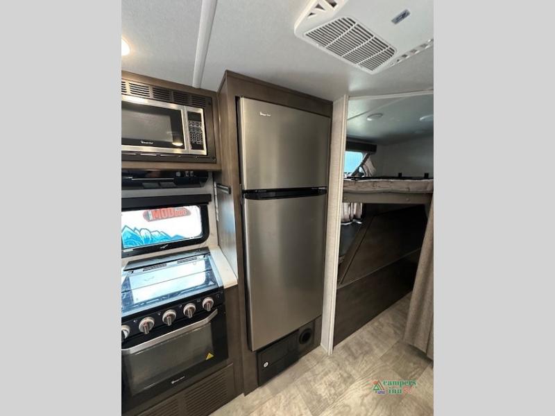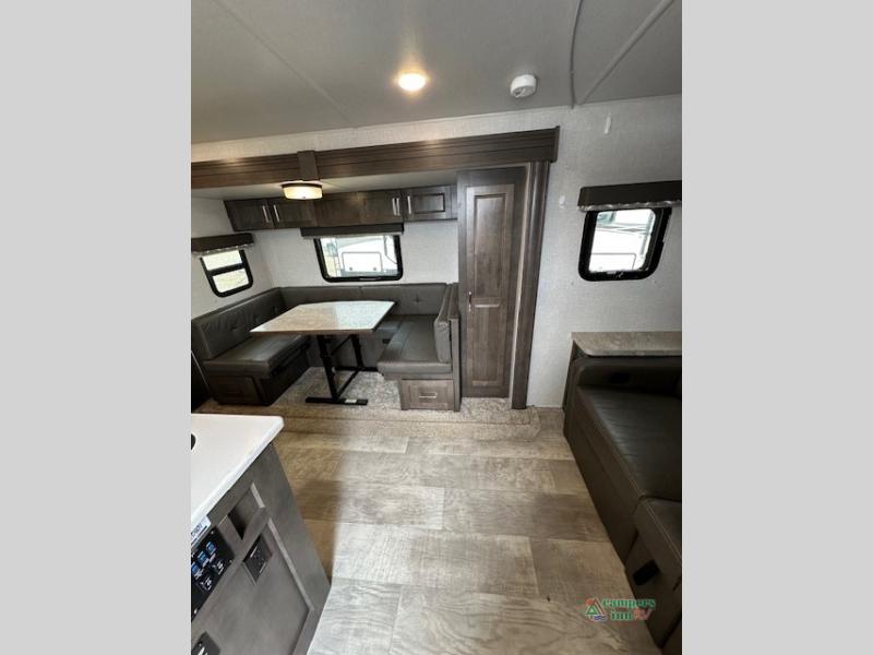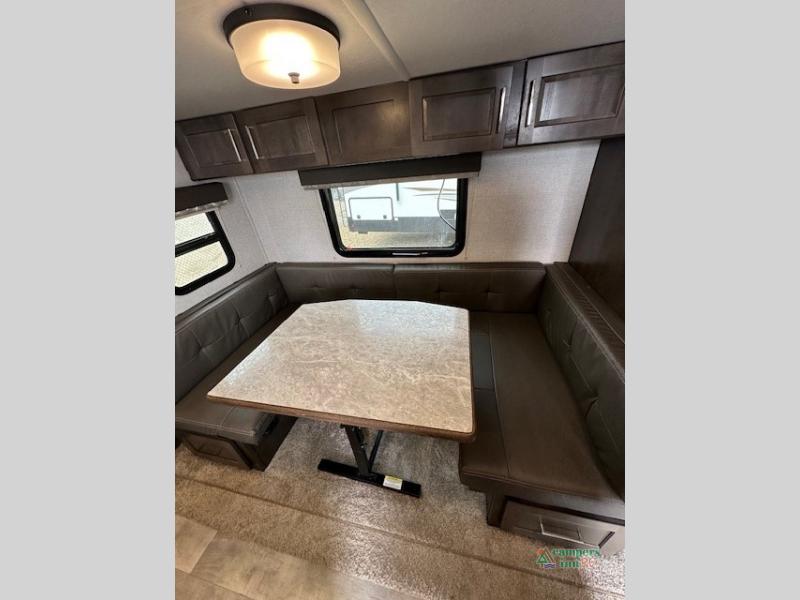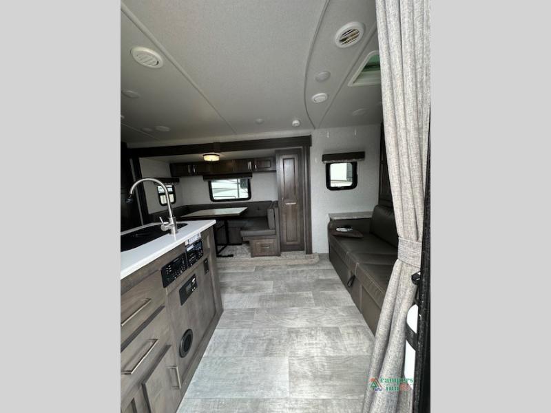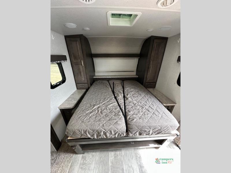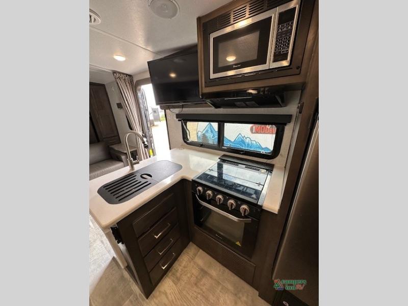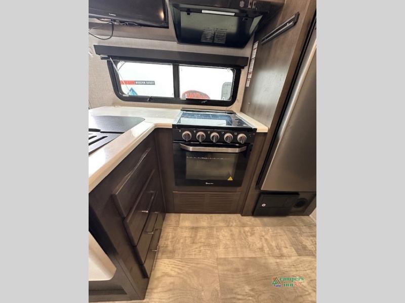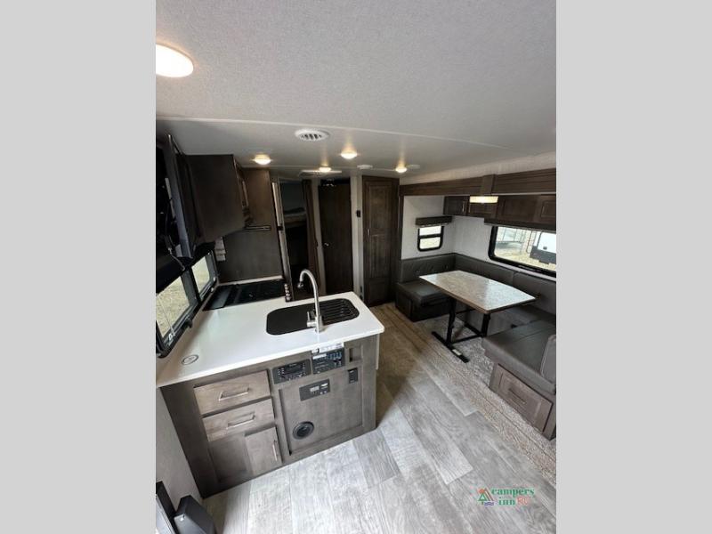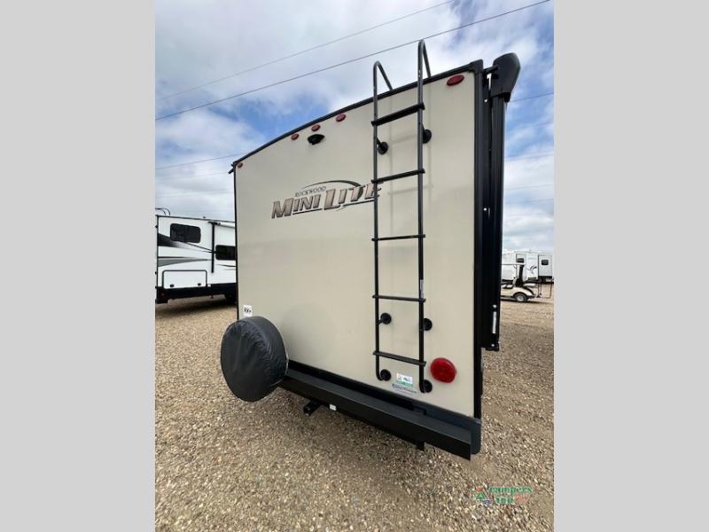 The easy-to-tow, lightweight Rockwood Mini Lite travel trailers by Forest River are the adventurer's dream come true. The six sided aluminum frame, fully laminated one-piece walkable roof, and painted fiberglass front cap with clear coat will provide a strong, durable unit that will last through years of memories and fun. You will appreciate many convenient features, such as the Maxxair fan with a cover, the back-up camera prep, and the Teton All In One WiFi booster with LTE prep and an antenna if you need to get some work done while you're away from home. Each model includes hardwood cabinet doors, a monitor panel switch with the OneControl app, and solid surface kitchen countertops. You will stay entertained on those rainy days with the multizone stereo with DVD, CD, AM/FM and Bluetooth control, and there are outdoor speakers so you will be the life of the campground. Choose your favorite Rockwood Mini Lite layout today!