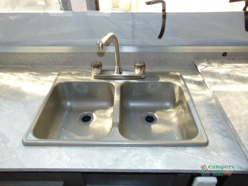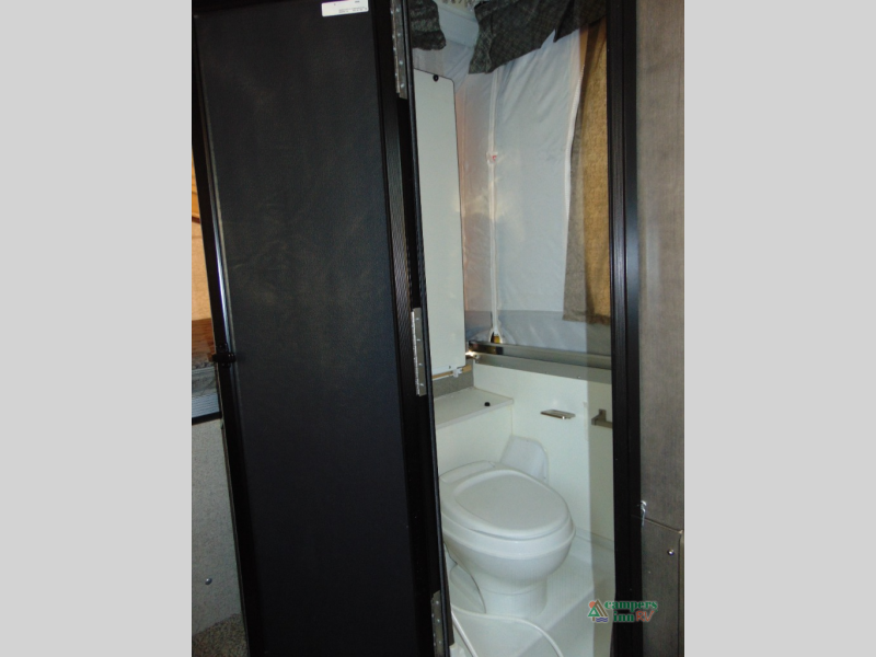 Enjoy inside comforts while sitting at the sofa with a table or the U-shaped slide out while eating or playing games before or after you explore outdoors! The cook will have a three burner cooktop, an oven and a three-way refrigerator to keep everyone fed, plus an outdoor griddle. The interior also offers a TV shelf, cabinet and counter space for your clothing and cellphones, plus a cassette toilet with a shower curtain for privacy. And you will find lots of exterior storage compartments for more gear, plus a 13' awning offering some protection from the sun.