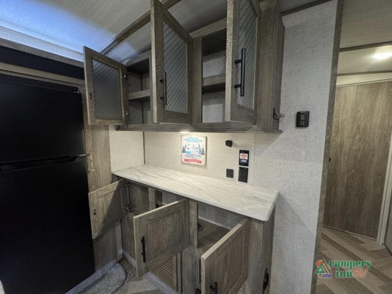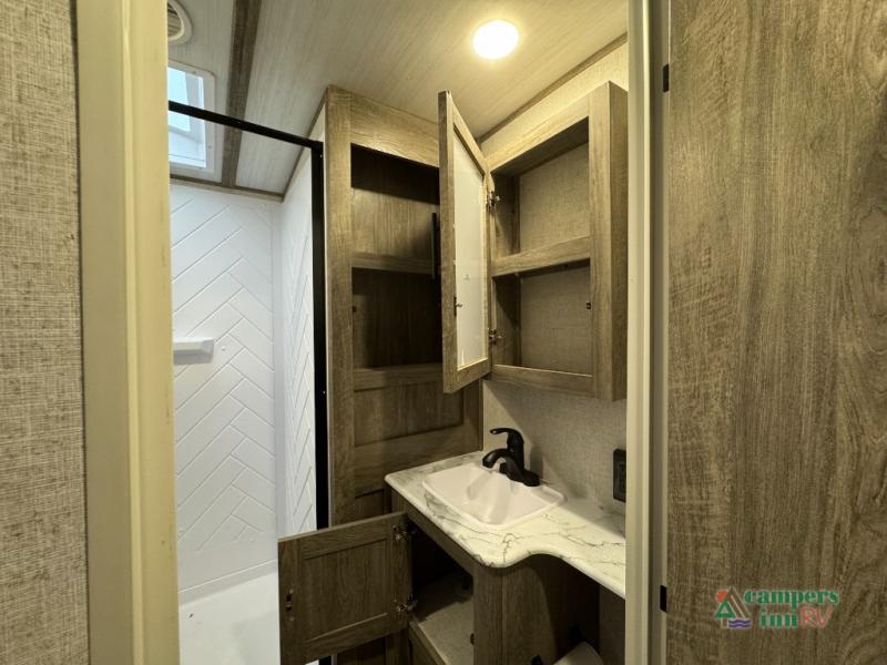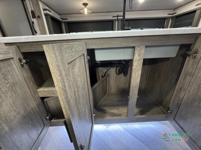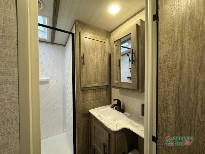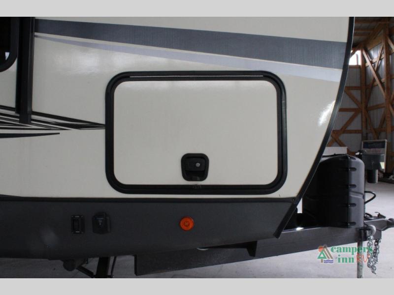 With each Forest River Salem Hemisphere fifth wheel and travel trailer, there are vacuum bonded "Aluma frame" sidewalls and floors, heated and enclosed dump valves and an underbelly, plus an Ivory performance colored exterior fiberglass with Smoked Quartz Metallic accents. A few other features you will love are the 7-way "rain defense" plug holder in the front frame, the extra large pass-through storage, the Hudson Wood agreeable grain cabinetry, and the designer's choice Herringbone Shaw flooring for style and easy clean up!