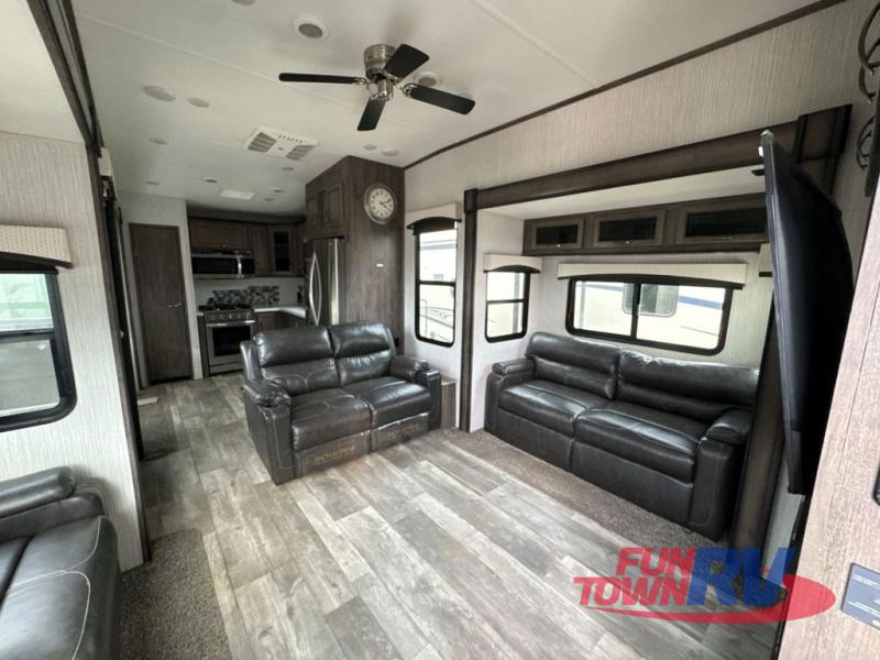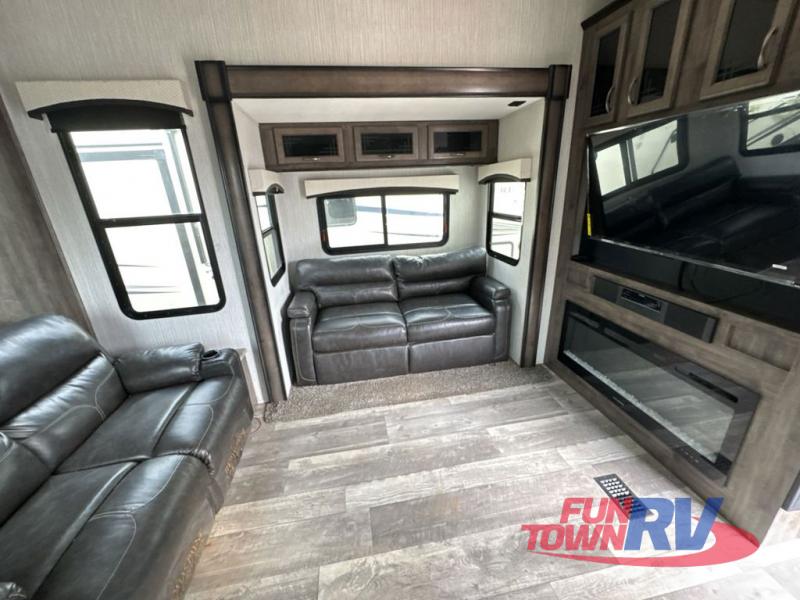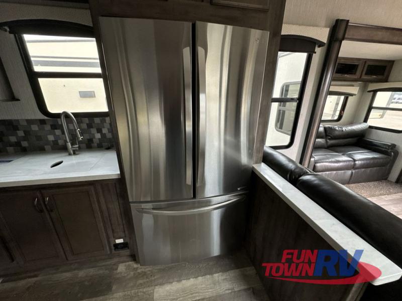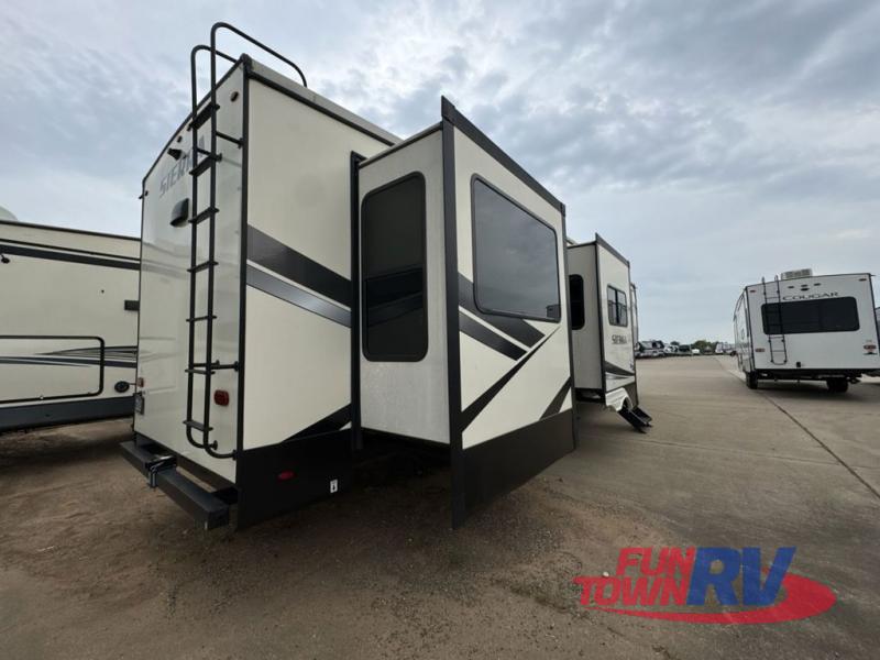 With any Sierra luxury fifth wheel by Forest River you will receive the best materials for the long haul giving you a solid foundation, and the interior offers luxurious comfort throughout. Constructed with a welded aluminum-framed, vacuum bonded laminated superstructure, a full enclosed underbelly with Underbelly Armor for any climate traveling, and a full walk-on roof. The Platinum package comes standard and provides solid surface countertops, two air conditioners, and a 6-point hydraulic leveling system. The Ultimate kitchen package gives you a stainless refrigerator with 1,000-watt inverter, a 30" over-the-range stainless microwave, and soft close doors and drawers. You will find many more luxurious, residential and convenient features, choose your favorite Sierra today!