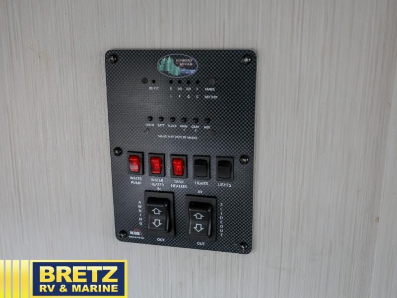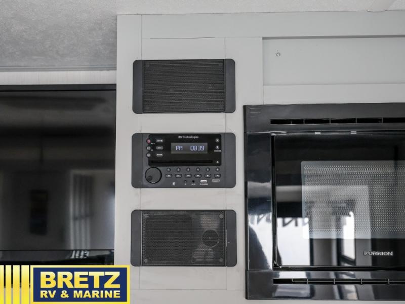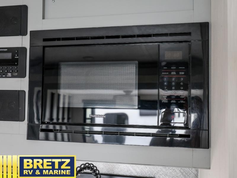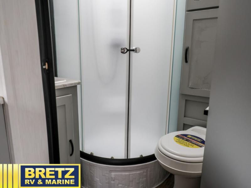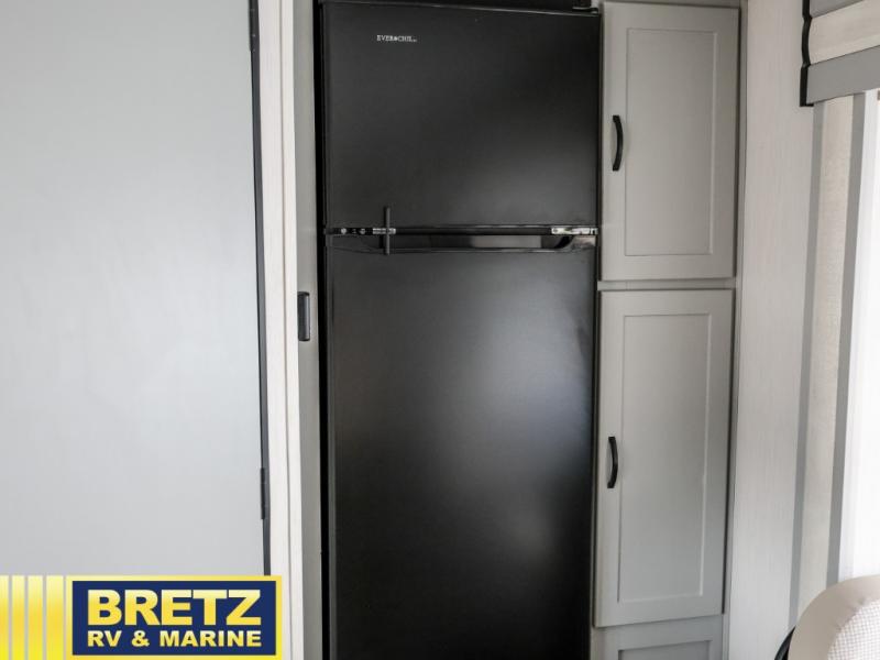 Versatility and comfort go hand-in-hand with this travel trailer thanks to the space saving Murphy bed. Enjoy the jackknife sofa during the day, and the comfortable bed at night. There are dual wardrobes on either side of the bed, plus dual nightstands that are USB and CPAP machine ready. Whip up your best meals on the three burner cooktop, or use the stainless steel 17" oven. This model also includes an upgraded 10.7 cu. ft. residential refrigerator and solid surface kitchen countertops for a more sleek look. You are sure to appreciate the full bath that includes a radius shower and a tall linen closet for bathroom necessities and clean towels!