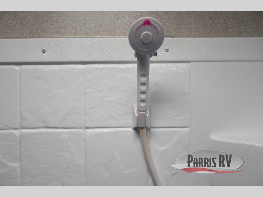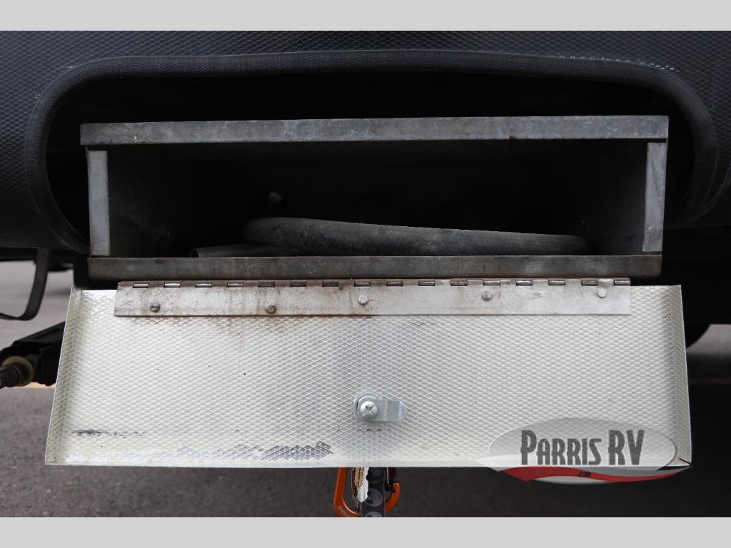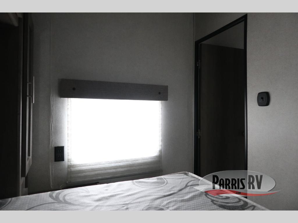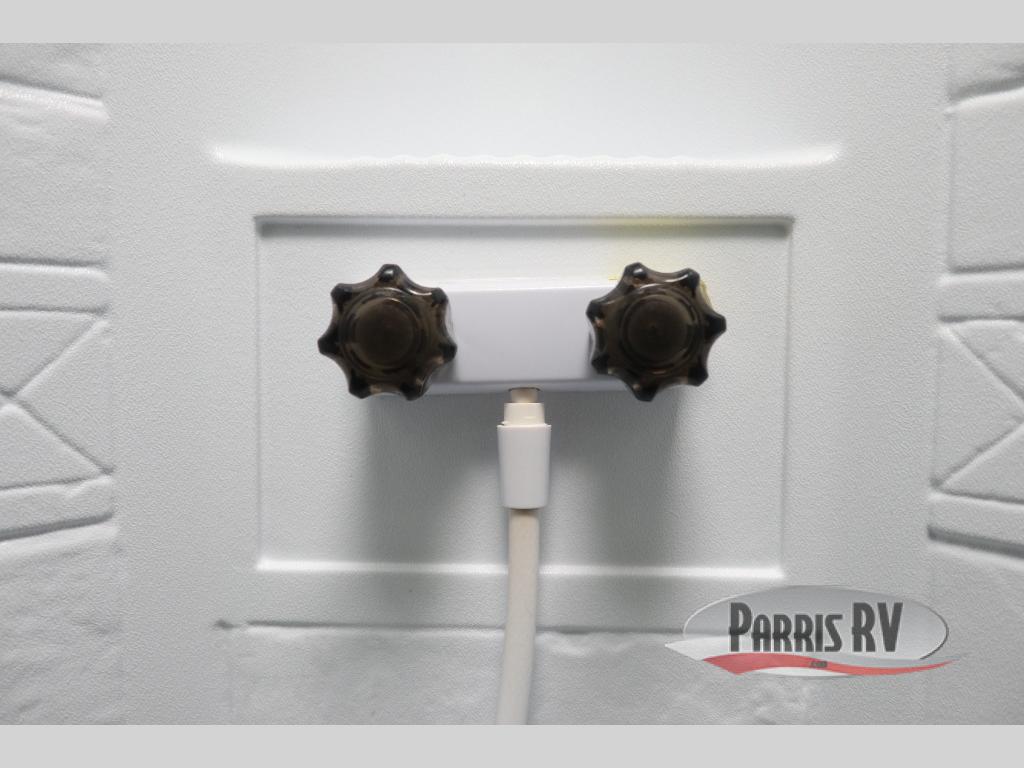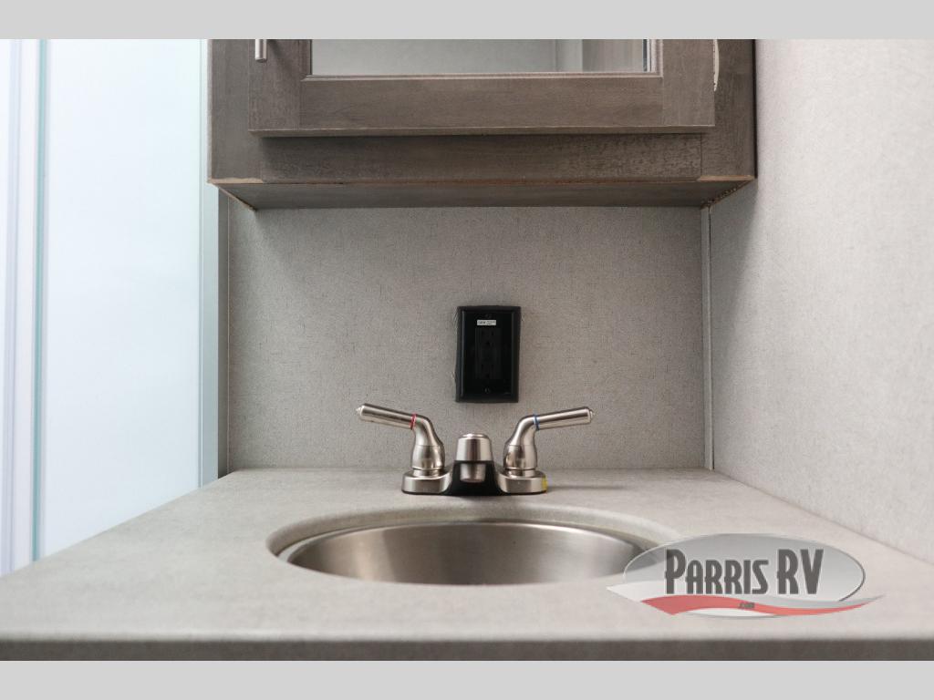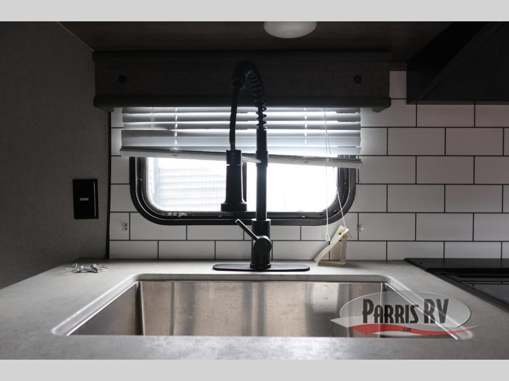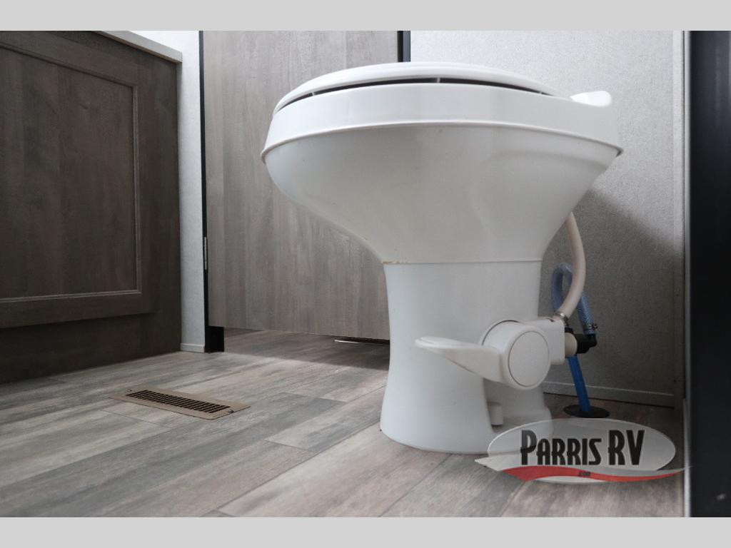 You will love how easy it is to access the dual entry bathroom from the front private bedroom in this toy hauler! Maximize your camping experience with friends and family by adding the optional electric bed and max clearance dinette to the rear and the optional Euro chairs near the fireplace in the living/kitchen area. The kitchen has a three burner cooktop so you can enjoy home cooked meals while camping and a 10 cu. ft. black stainless steel refrigerator to keep your beverages nice and cold!