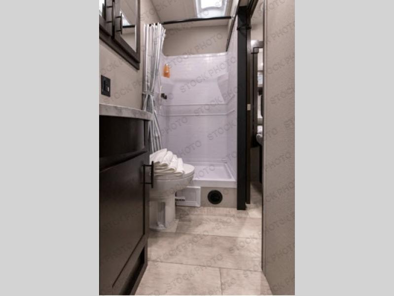 Spacious Interior – Large panoramic windows, shower skylight, and residential-style cabinetry enhance comfort and style.
