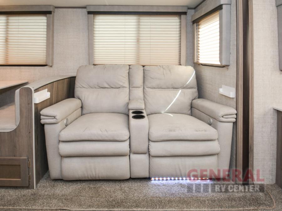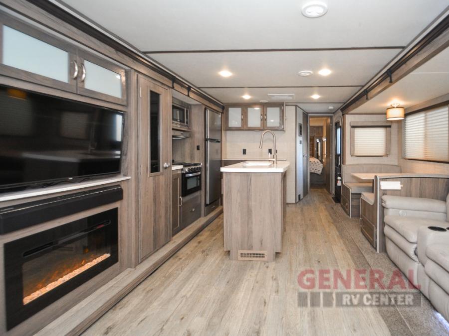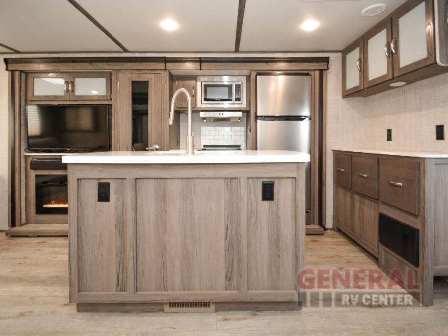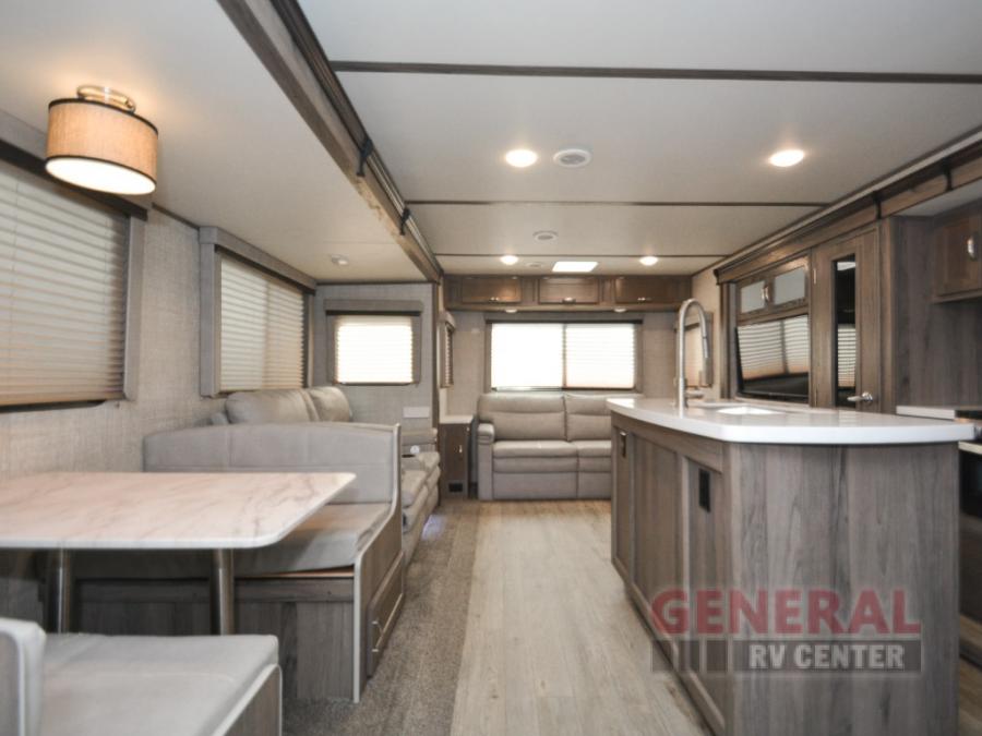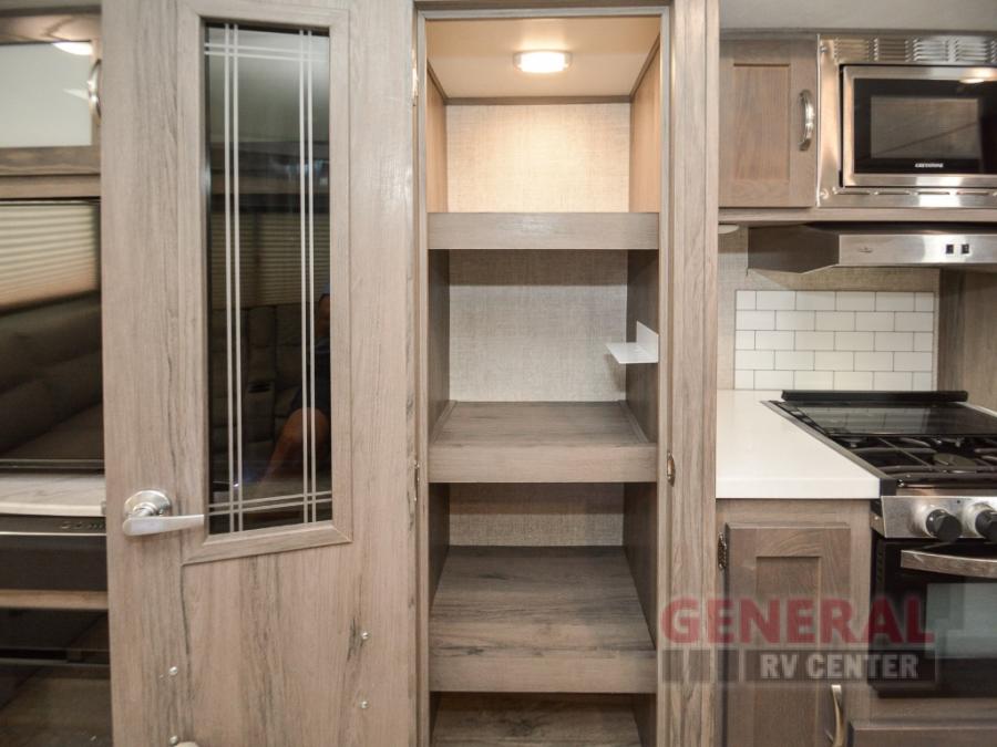 This 2021 Gulf Stream travel trailer offers comfort and convenience with a spacious living area thanks to the opposing slides. The kitchen island makes the most of gatherings providing ease and accessibility to the surrounding appliances and generous pantry. Serve up meals at the dinette or dine outdoors under the the patio awning. When it's time to turn in, a welcoming king bed and full bathroom give way to rest and revival for your next day of adventure.