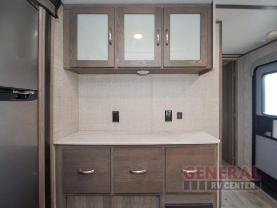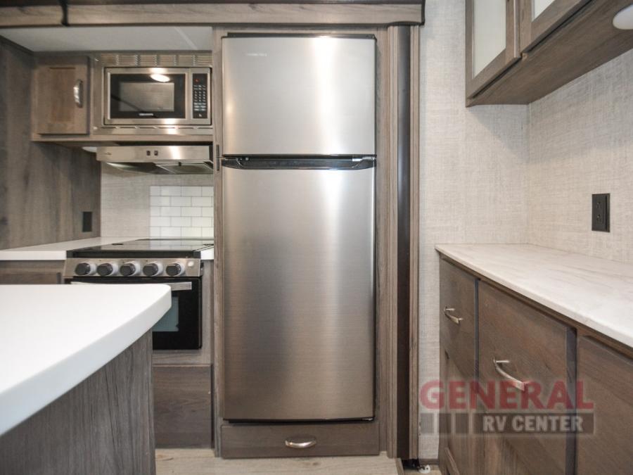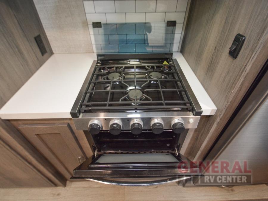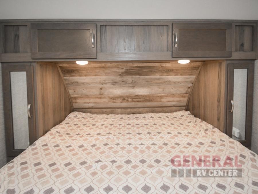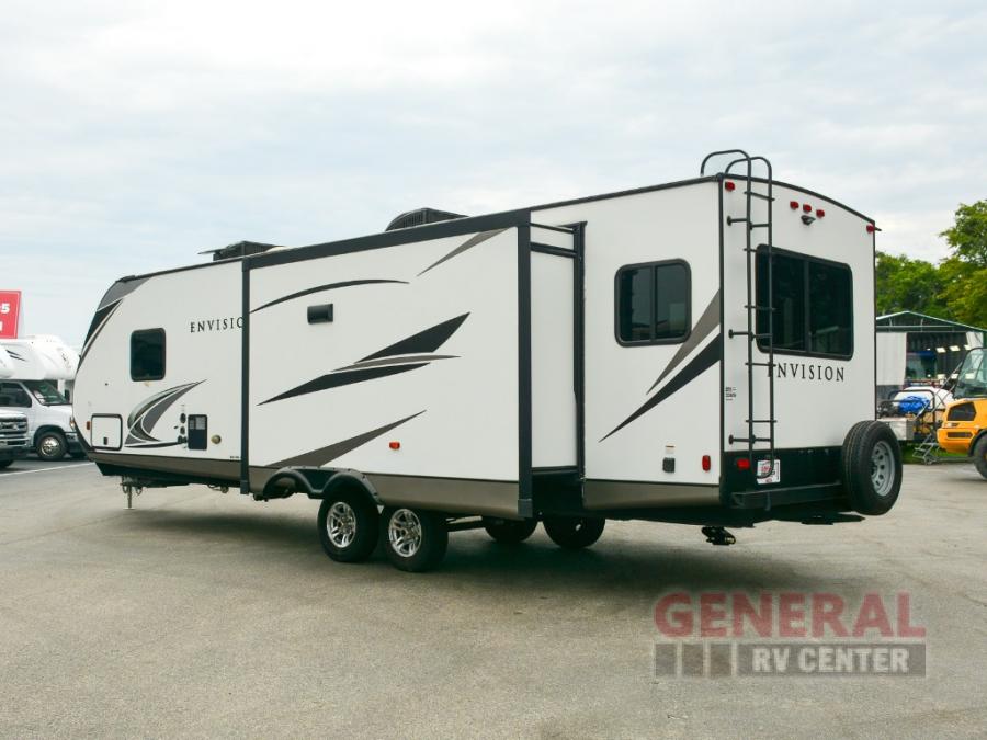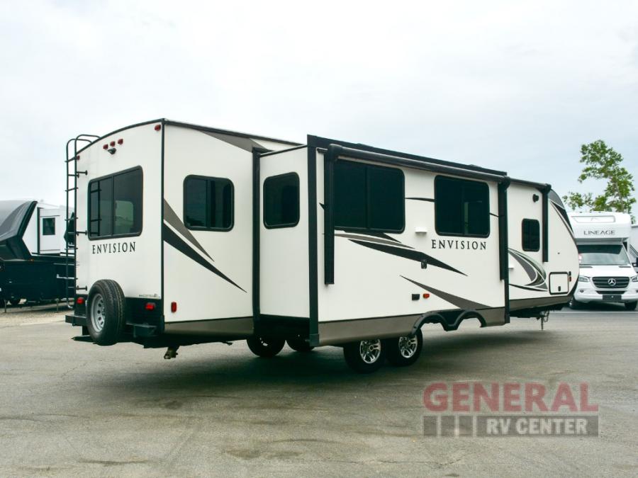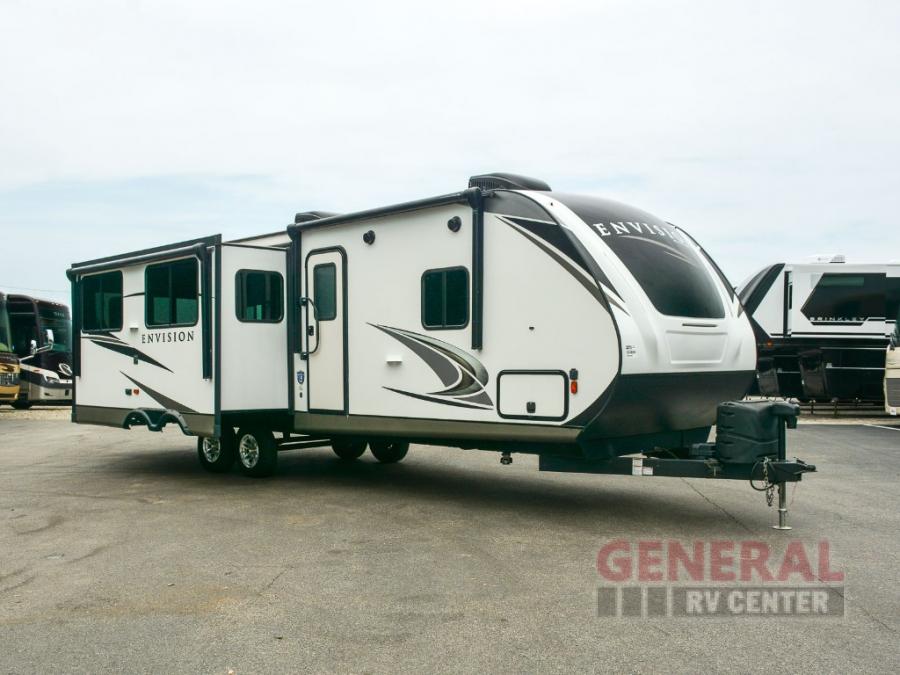 Each Gulf Stream Envision travel trailer is built on a welded aluminum frame with laminated fiberglass walls for lightweight towing, and they also include Azdel synthetic substrate in the side walls. The standard Envision Power Package and the Worry-Free Camping Package include features that will make camping easier than ever, such as a power tongue jack, an exterior docking station, slam-latch baggage doors, plus so much more. You will love the look of the solid surface kitchen countertops, along with the designer window treatments and stainless steel appliances. The Envision travel trailers allow you to enjoy "luxury in the wild", so what are you waiting for?